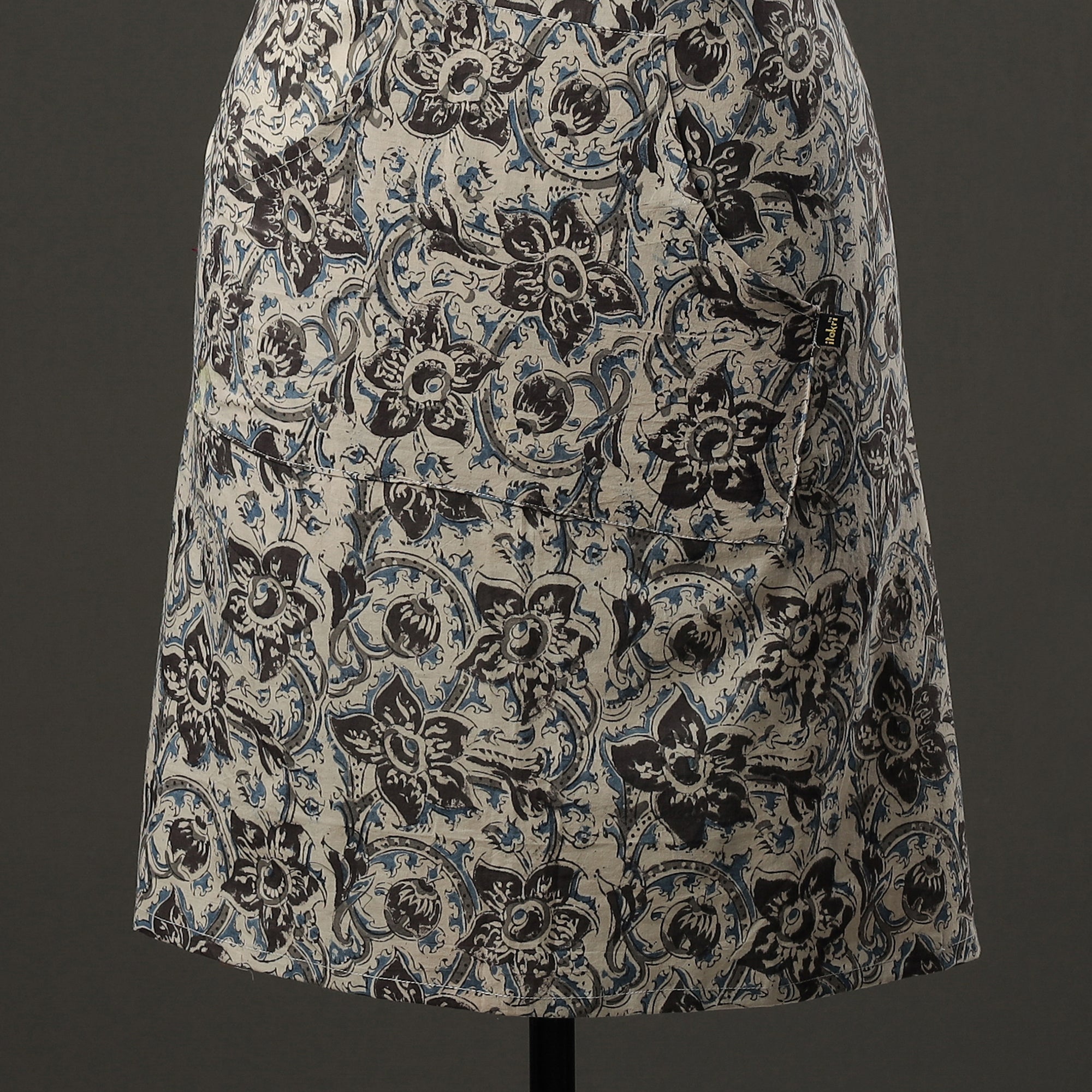 This beige kalamkari block printed cotton apron with pocket - a versatile and stylish addition to your cooking and baking ensemble! Made from high-quality cotton material, this apron is perfect for protecting your clothing from splatters and while you. The traditional kalamkari hand block print adds a touch of elegance and sophistication to your cooking attire, making it a great choice for both home cooks and professional chefs. With a convenient pocket at the front, this apron allows you to keep all your essential kitchen tools close at hand. Whether you need a spatula, spoon or timer, you can easily store it in the pocket for easy access while you work. The adjustable neck strap and waist ties ensure a comfortable and secure fit for all body types, making this apron suitable for both men and women.