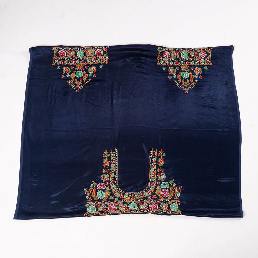 Fine quality ahir hand embroidery kutch mirror work mashru silk blouse piece. The kutch embroidery is a handicraft and textile signature art tradition of the tribal community of kutch district in Gujarat. This embroidery with its rich designs has made a notable contribution to the Indian embroidery traditions. The embroidery, practiced normally by women is generally done on fabrics of cotton & Silk, in the form of a net using cotton or silk thread.