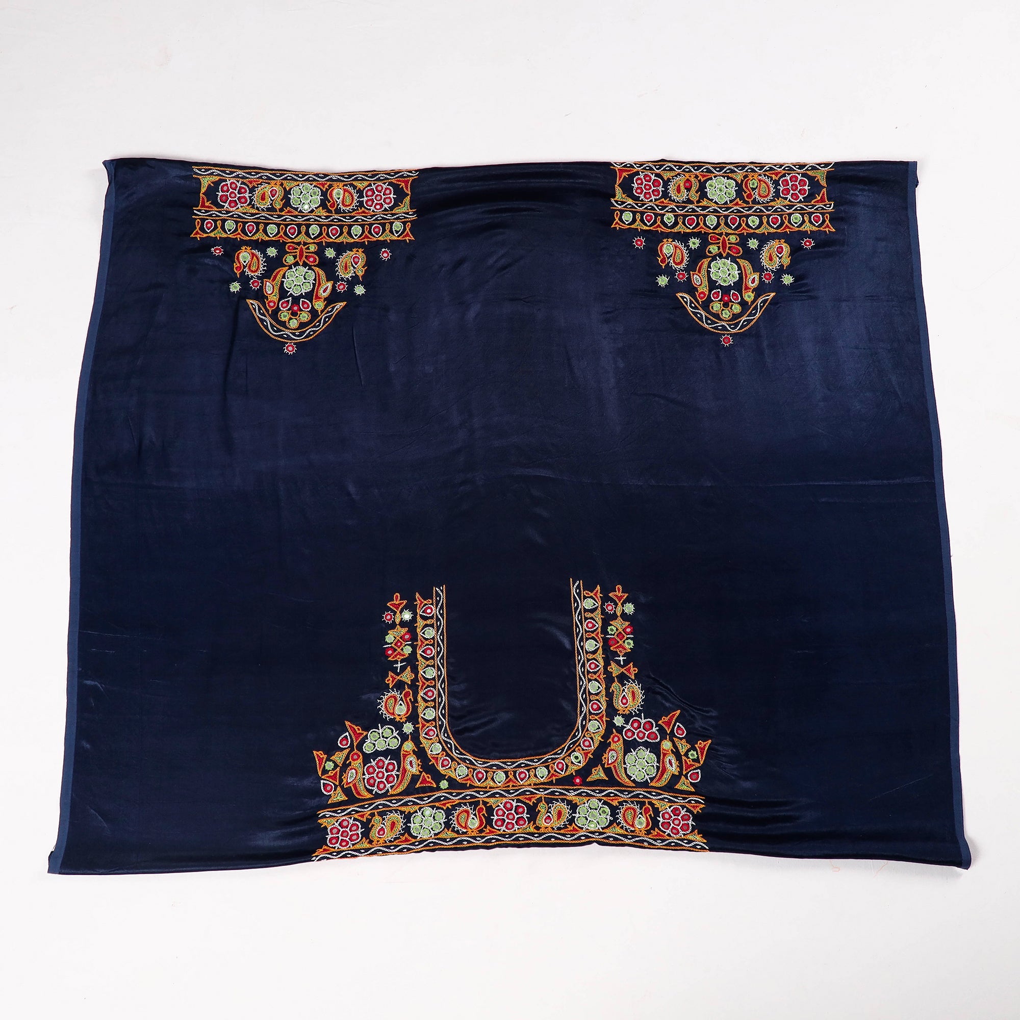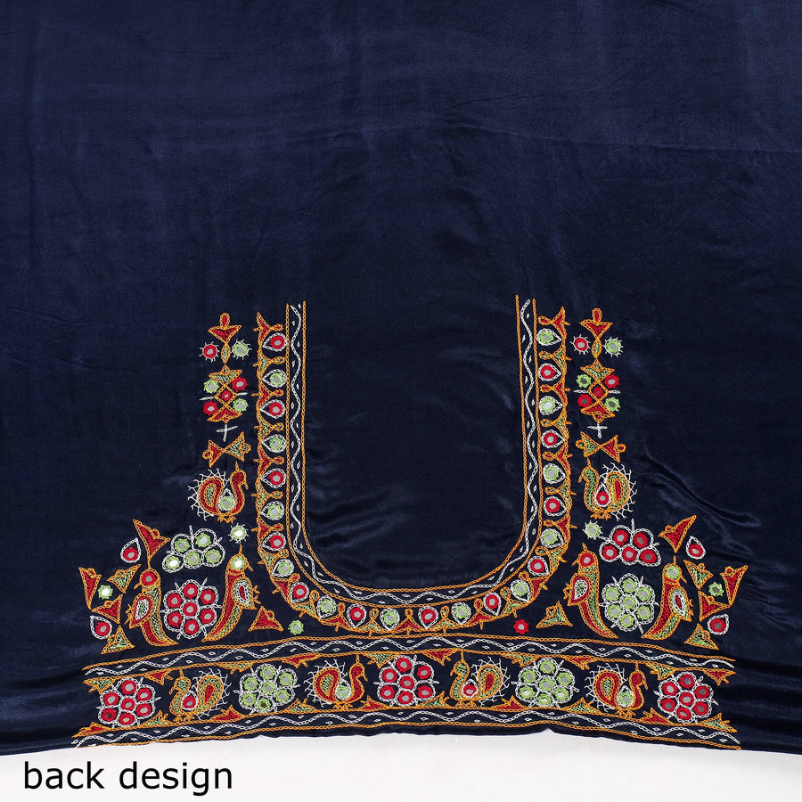 Fine quality ahir hand embroidery kutch mirror work mashru silk blouse piece. The kutch embroidery is a handicraft and textile signature art tradition of the tribal community of kutch district in Gujarat. This embroidery with its rich designs has made a notable contribution to the Indian embroidery traditions. The embroidery, practiced normally by women is generally done on fabrics of cotton & Silk, in the form of a net using cotton or silk thread.