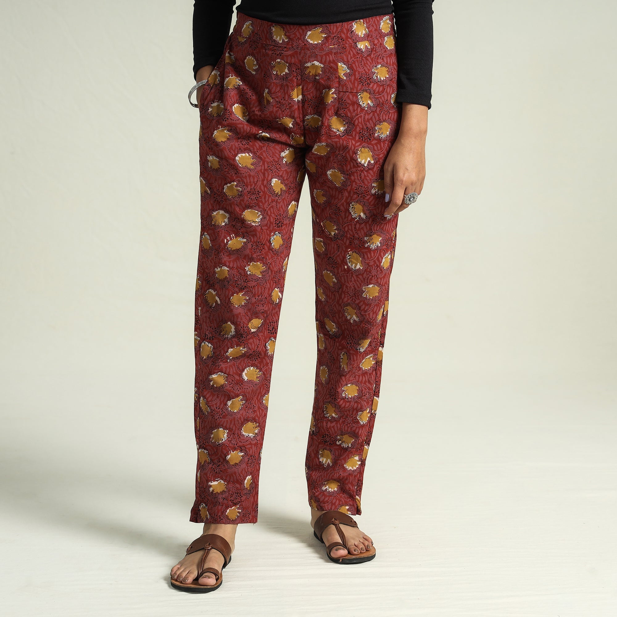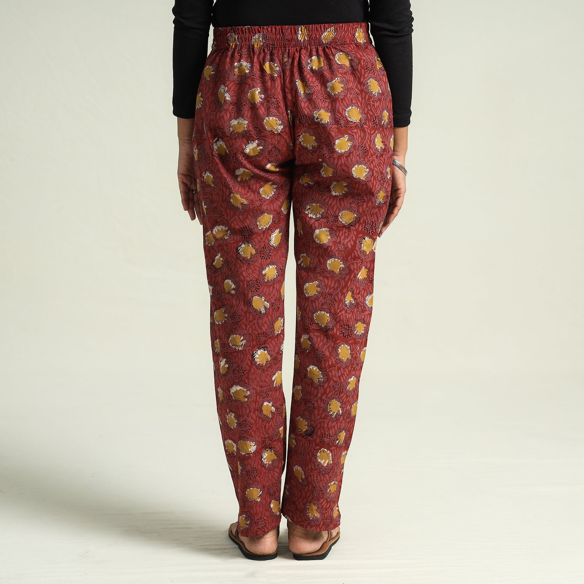 Elevate your style with this stunning bagru block printed cotton elasticated pant. Crafted from naturally dyed cotton fabric. This pant offers the perfect blend of comfort and style. The elasticized waist ensures a great fit, while the two side pockets add functionality. This pant makes you feel comfortable and stylish all day long and is perfect for your daily outings and special occasions.