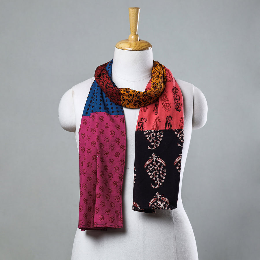 Elevate your style with our special multicolor bagh block printed patchwork cotton stole. This stole is crafted using naturally dyed cotton fabric through the traditional process of hand block printing practised in Bagh in the Dhar district of Madhya Pradesh. Exquisitely created with skilled artisans, this classy stole spruces up the everyday look to create a lasting impact.
