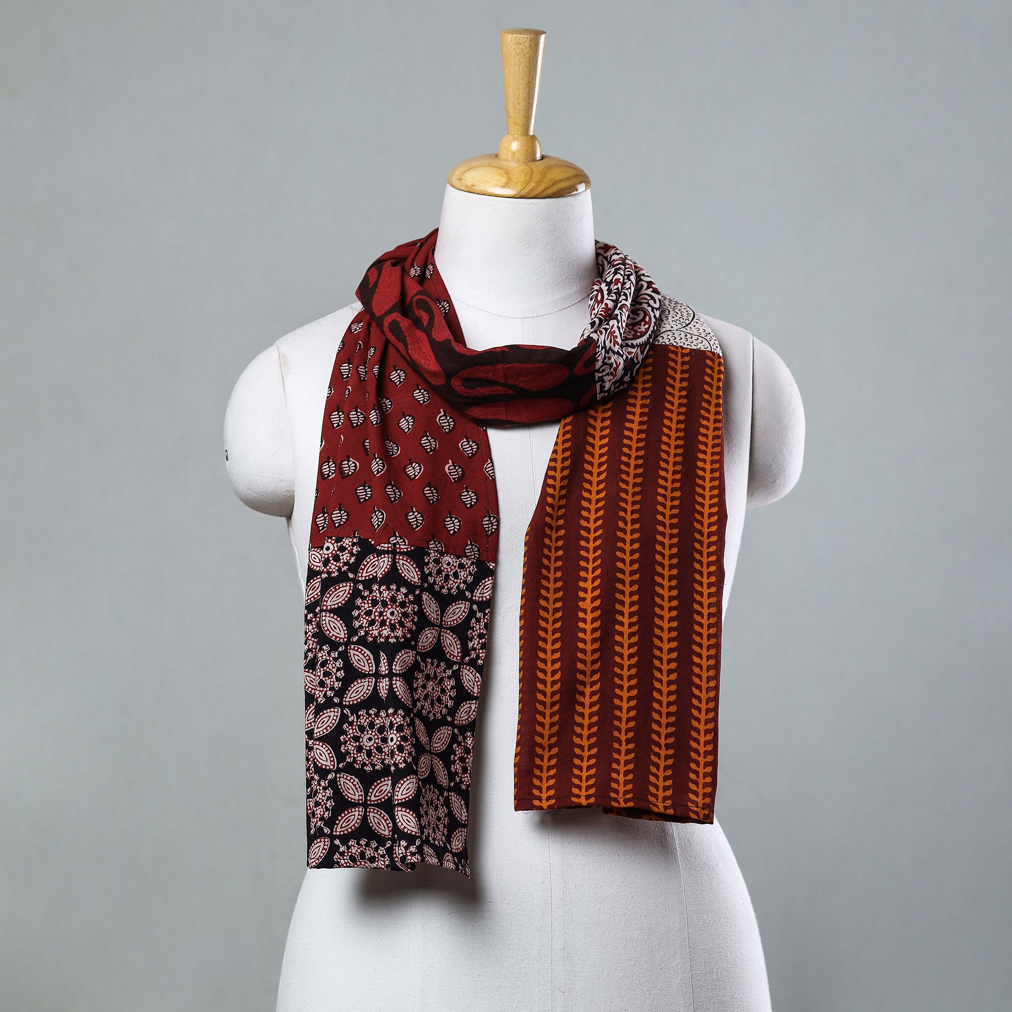 Elevate your style with our special multicolor bagh block printed patchwork cotton stole. This stole is crafted using naturally dyed cotton fabric through the traditional process of hand block printing practised in Bagh in the Dhar district of Madhya Pradesh. Exquisitely created with skilled artisans, this classy stole spruces up the everyday look to create a lasting impact.