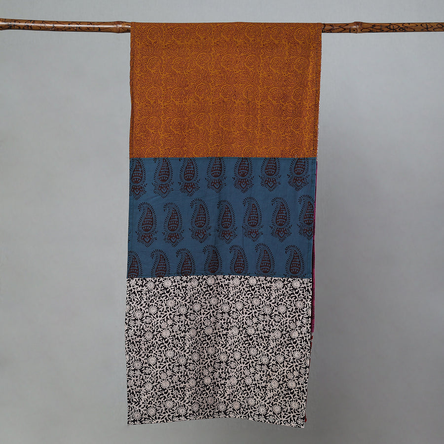 Elevate your style with our special multicolor bagh block printed patchwork cotton stole. This stole is crafted using naturally dyed cotton fabric through the traditional process of hand block printing practised in Bagh in the Dhar district of Madhya Pradesh. Exquisitely created with skilled artisans, this classy stole spruces up the everyday look to create a lasting impact.