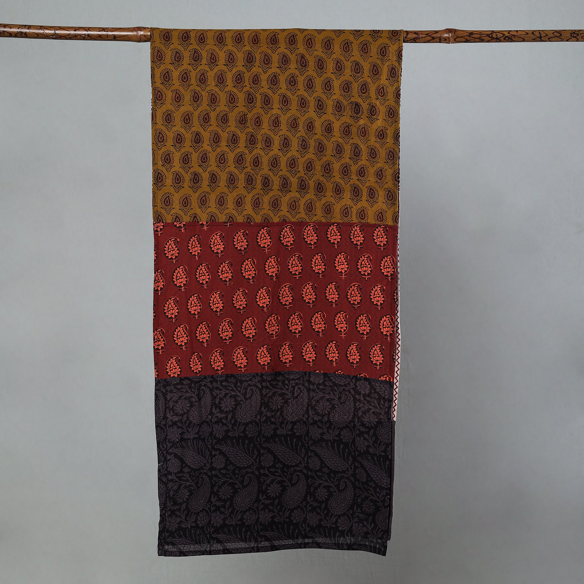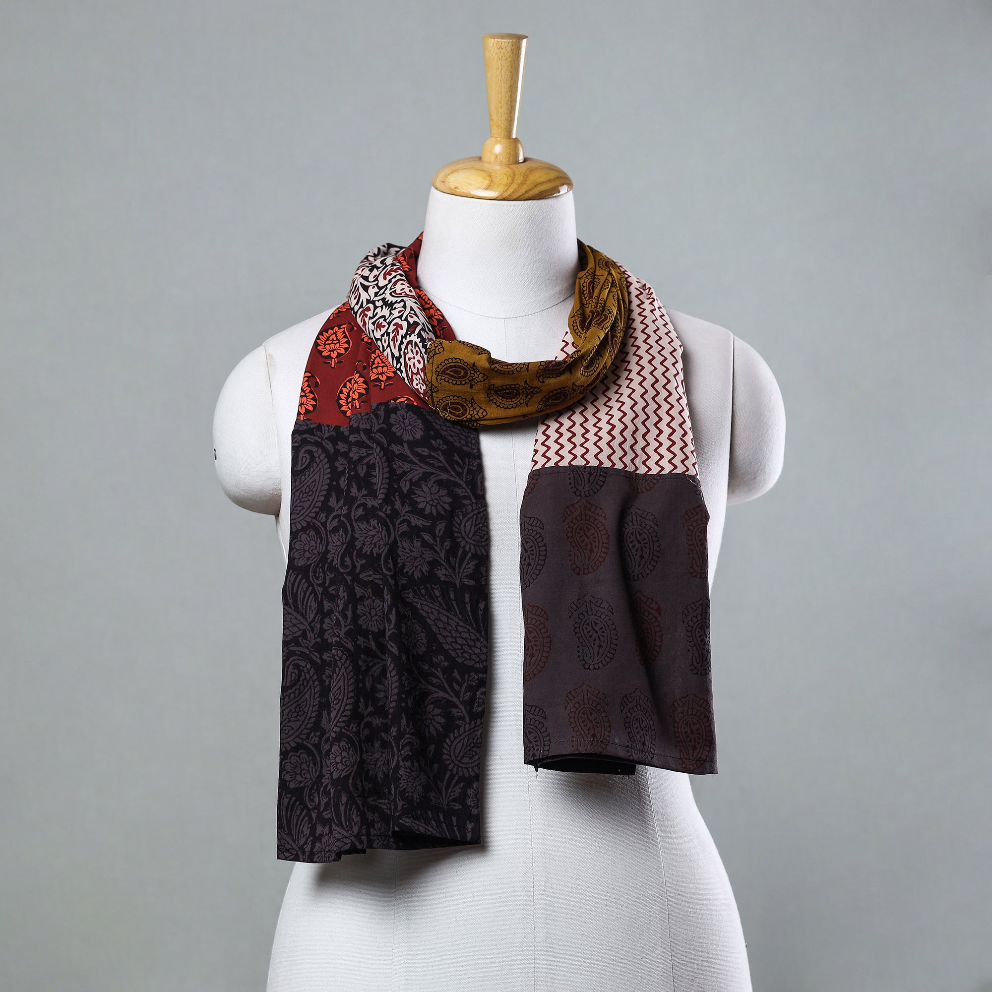 Elevate your style with our special multicolor bagh block printed patchwork cotton stole. This stole is crafted using naturally dyed cotton fabric through the traditional process of hand block printing practised in Bagh in the Dhar district of Madhya Pradesh. Exquisitely created with skilled artisans, this classy stole spruces up the everyday look to create a lasting impact.