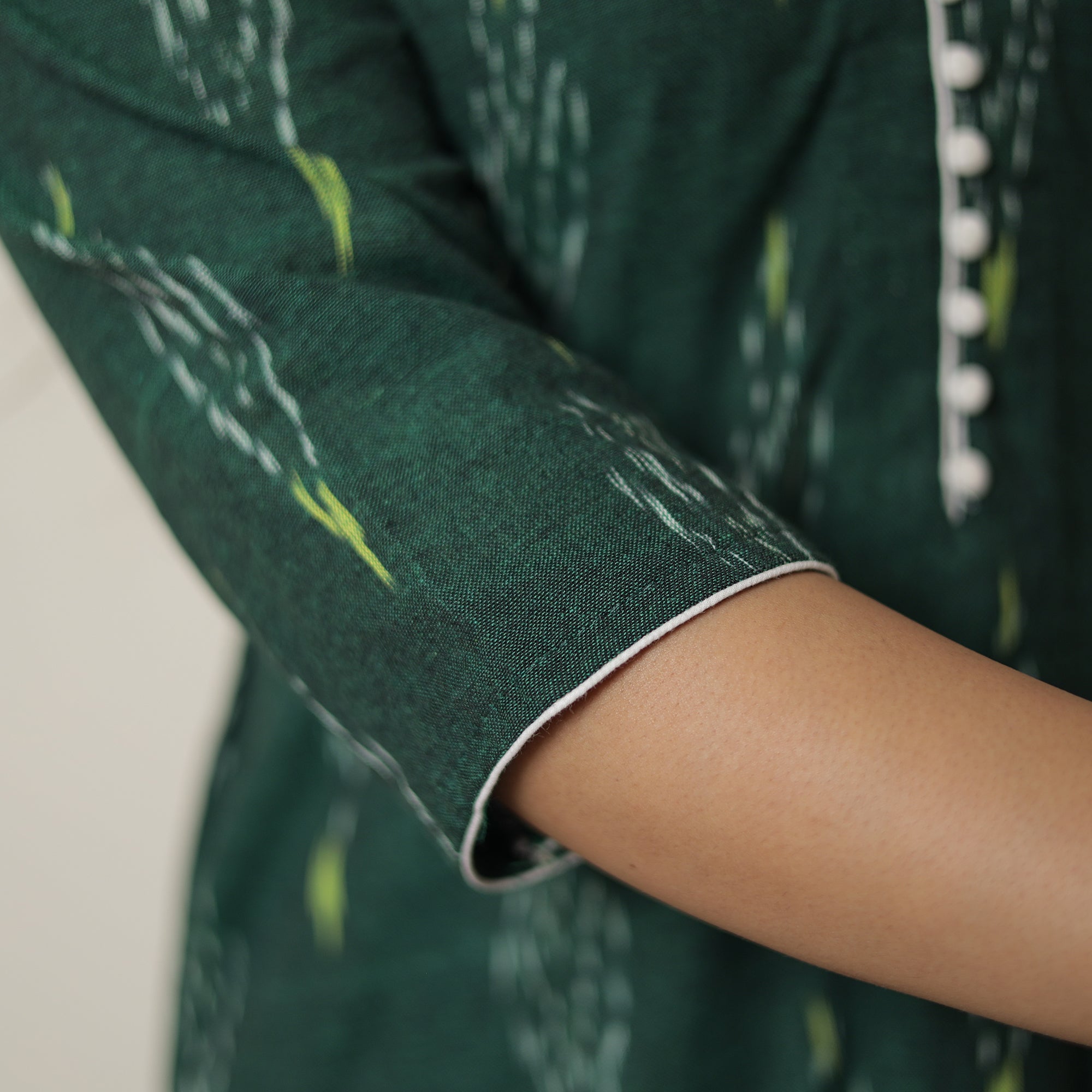 Look and feel beautiful in this uniquely designed pochampally ikat weave cotton long kurta. This exquisite kurta is crafted from fine-quality cotton fabric, ensuring a comfortable feel against your skin. The kurta also features a convenient one-side pocket, perfect for carrying small essentials. This cotton kurta makes you comfortable all day long. This kurta is perfect for your daily outing and for a special occasion.