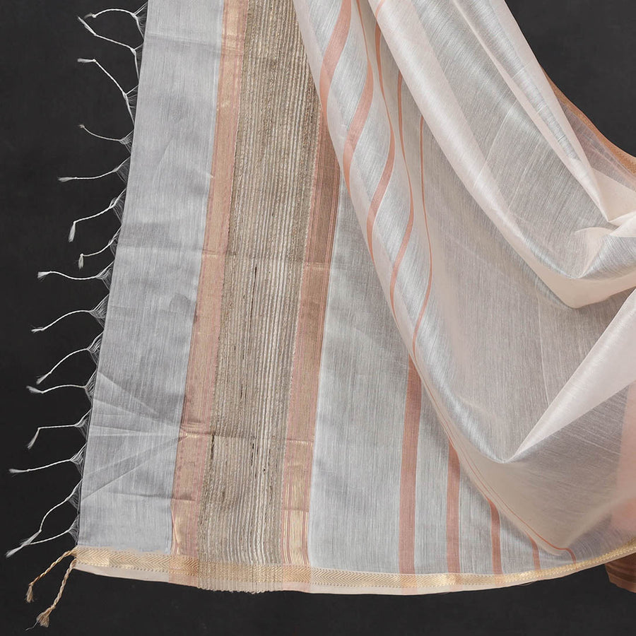 Brown - Handloom Buti Maheshwari Saree with Zari Border 43