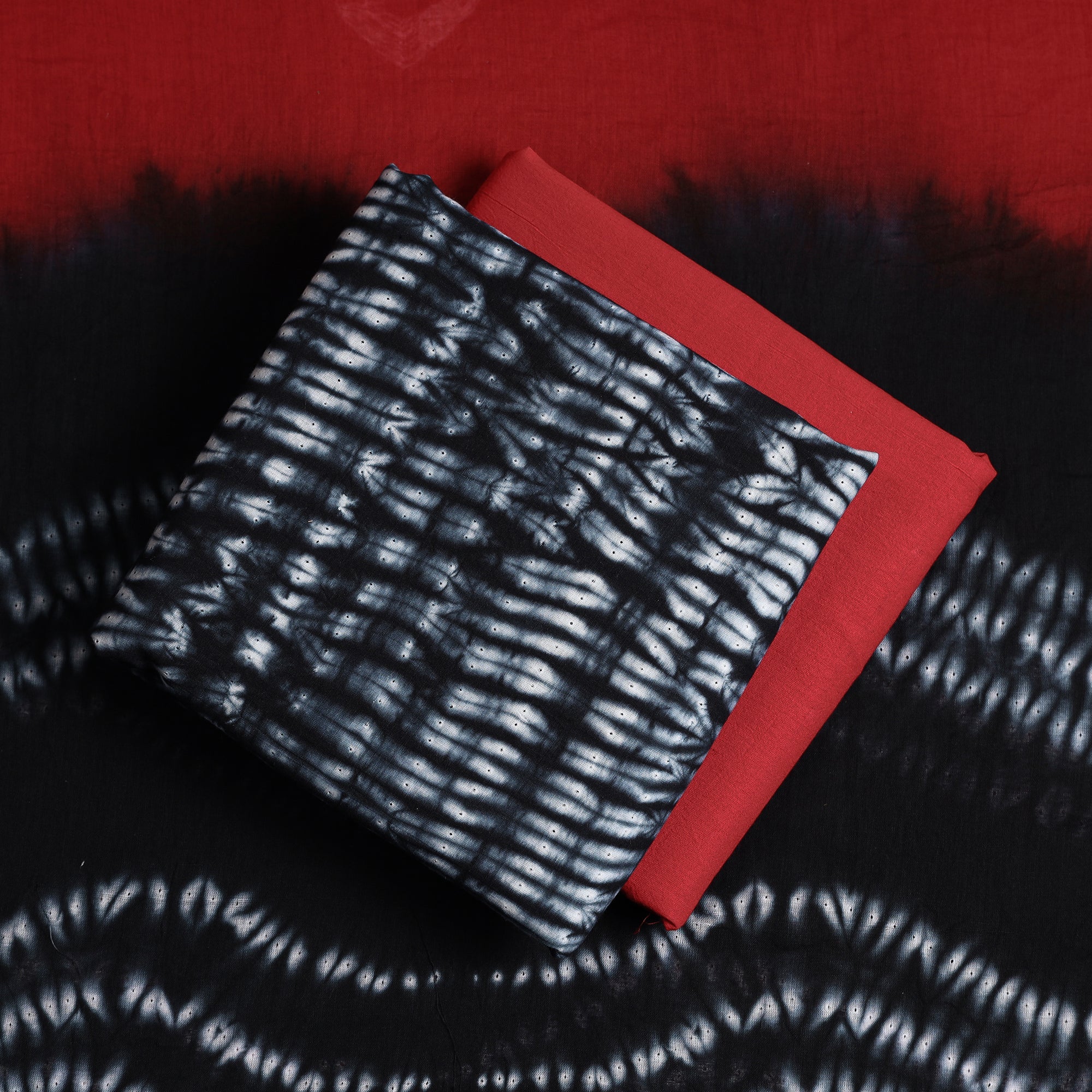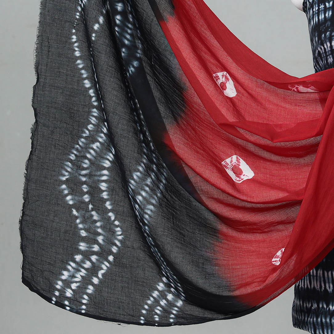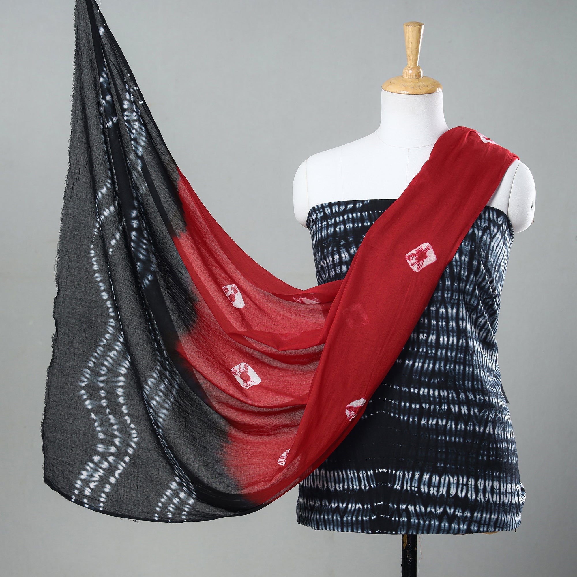 Fine quality shibori tie-dye 3pc mul cotton kurta material and dupatta with plain cotton bottom material. This stunning set features a hand-dyed fabric created using the intricate shibori tie and dye technique. Each piece is meticulously tied using clamps or stitches to achieve unique and mesmerizing designs. Experience the artistry and beauty of shibori with this suit material set, perfect for creating your own stylish outfits.