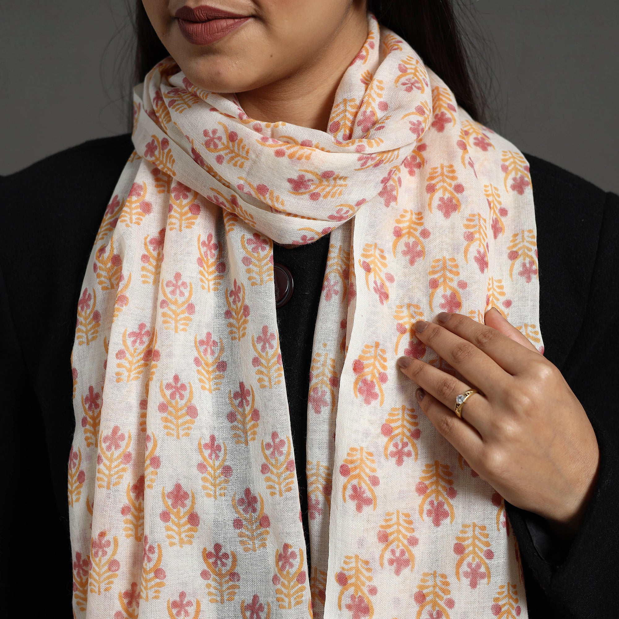 Experience the rich heritage of Rajasthan with our pure wool orange block print sanganeri stole. The pure wool construction offers exceptional warmth and softness, making it perfect for cold weather. The bleed-free VAT dyes ensure lasting vibrancy. The elaborate detailing of the flowers and petals showcases the artistry of this hand-block printing technique originating from Sanganer, Rajasthan. Embrace timeless elegance and support artisanal craftsmanship with this unique accessory.