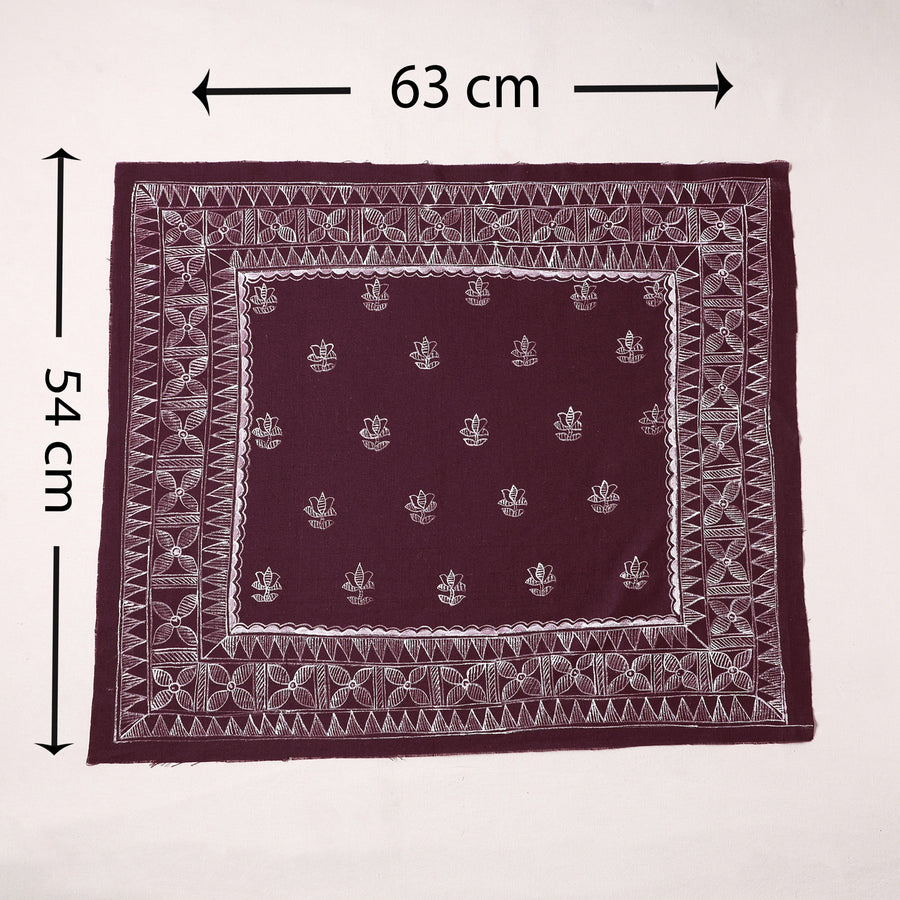This original artwork of madhubani painting is handpainted by master artisan Hira Devi from Bihar. Handpainted using fabric colours on cotton fabric base. Madhubani paintings is one of the many famous traditional Indian art forms.