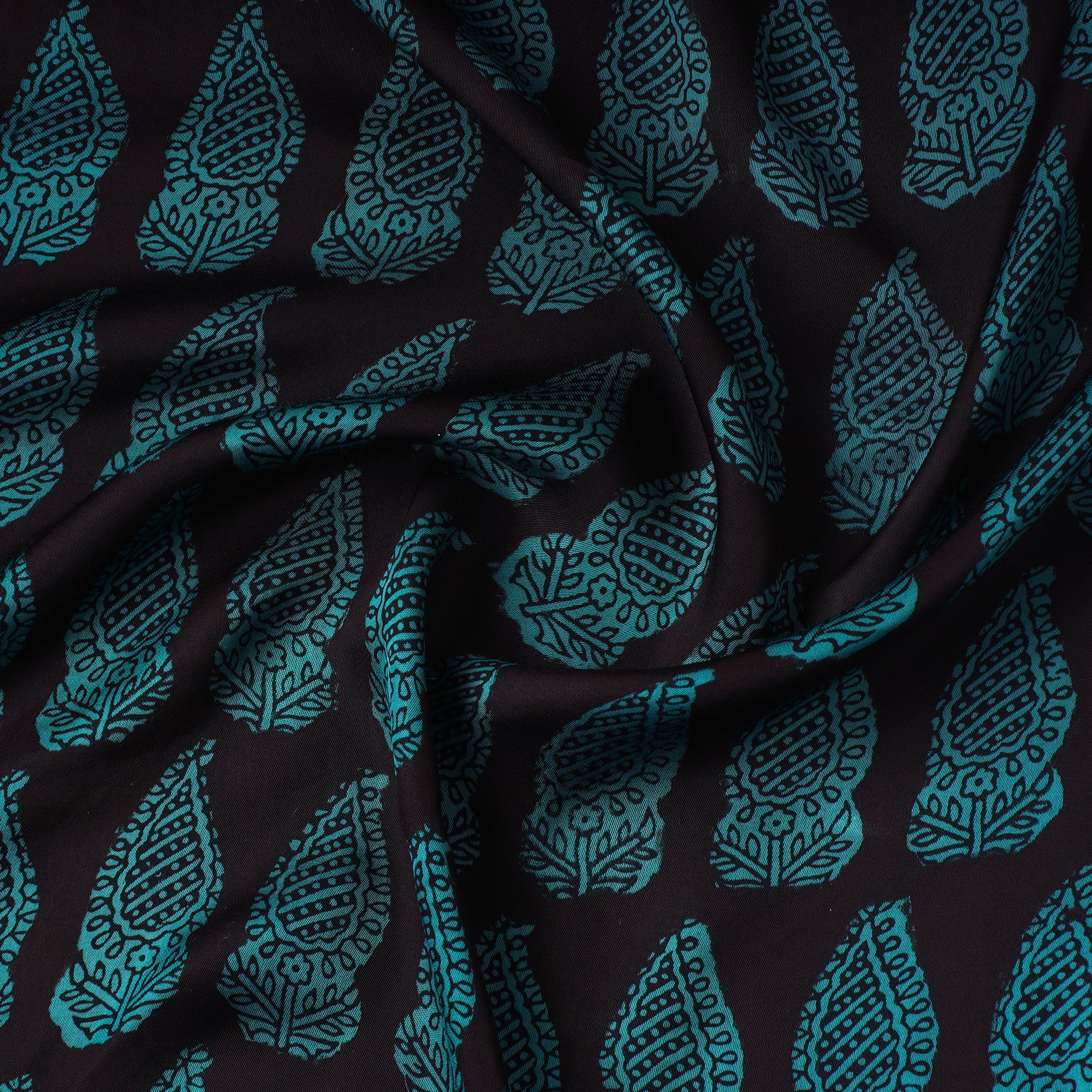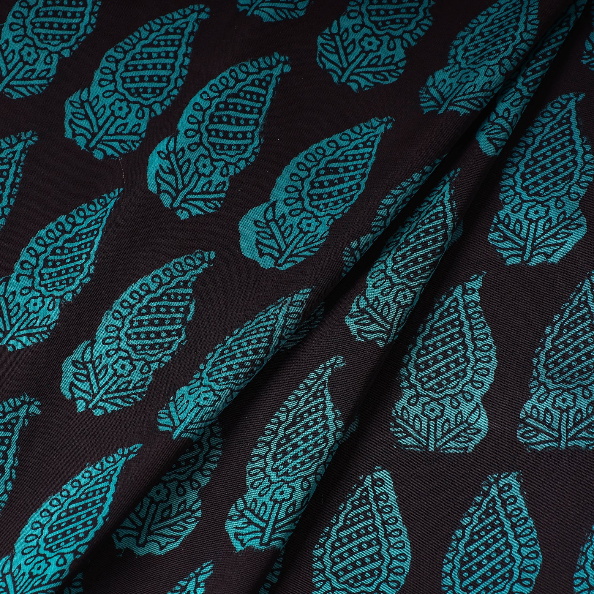 Black - Natural Dyed Cotton Hand Block Bagh Print Fabric 17