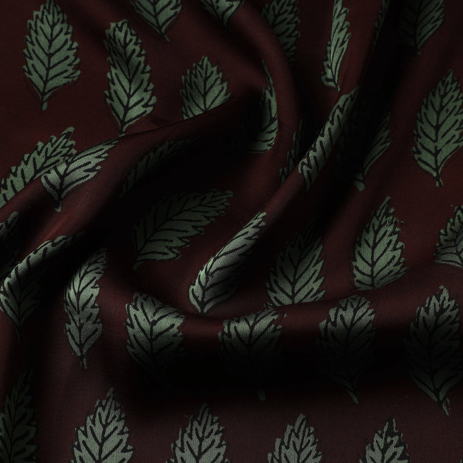 Fine quality bagh hand block printed natural dyed modal satin fabric. Bagh Artisans inspired by the Bagh river, skillfully craft intricate geometric and floral compositions using earthy tones. New blocks for printing are made by hand from teak or rosewood but some blocks have been in use for 200–300 years. Motifs for the prints are geometric or floral sometimes inspired by the 1500-year-old printing in the Bagh Caves. This fabric Meticulously made by master artisan Mohammed Rafik Ji Khatri, who practices the age-old art of Bagh block printing in the Dhar district of Madhya Pradesh, this fabric is a testament to skilled artistry. Using natural dyes and following traditional processes.
