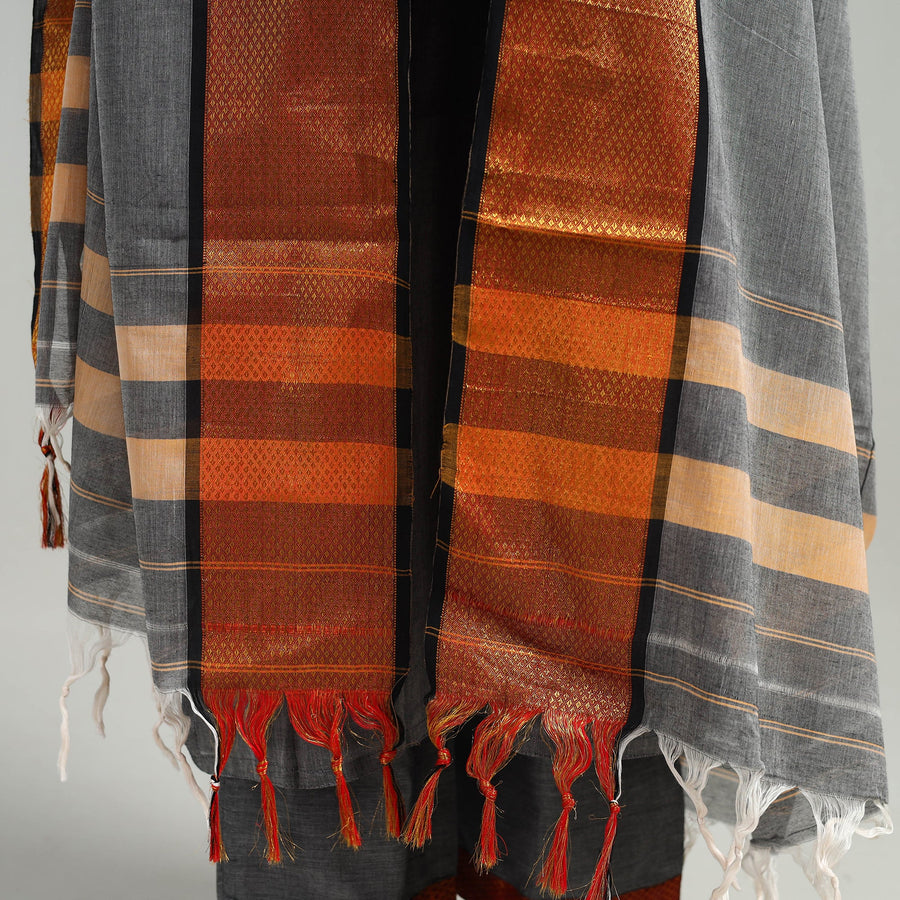 Black - 3pc Cotton Unstitched Dharwad Dress Material with Border 16