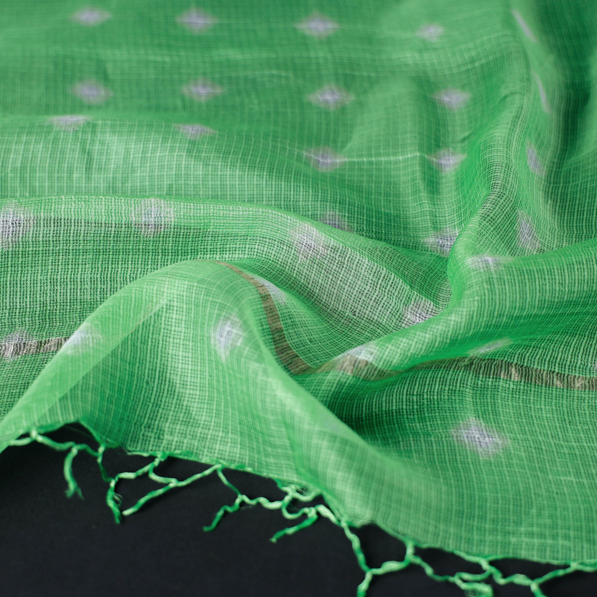 Traditional bandhani tie-dye kota doria silk dupatta with tassels, featuring majestic bandhani pattern, tie-dyed using the traditional technique practised by master artisan family of Badshah Miyan from the state of Rajasthan. The art of Bandhani is highly skilled process. The technique involves dyeing a fabric which is tied tightly with a thread at several points. Kota doria is a blend of strong cotton and lustrous silk yarns, Kota doria is an age-old Indian textile produced in the Kota district of Rajasthan.