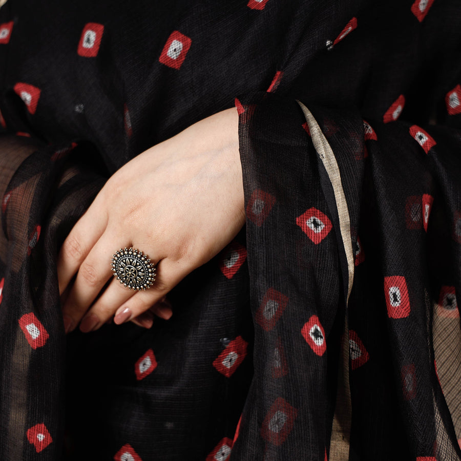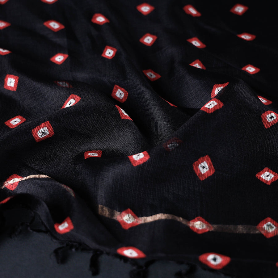Black - Kutch Handwoven Merino Wool Tie-Dye Bandhani Shawl 01
