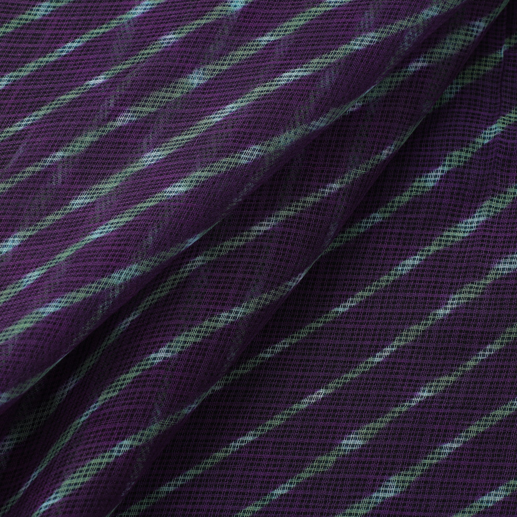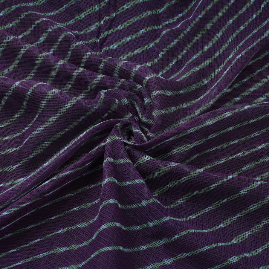 This fine quality purple original leheriya tie-dye kota doria cotton fabric. This fabric features wavy patterns created using the traditional leheriya tie & dye technique, dyed with azo-free dyes. It is handcrafted by the master artisan family of Badshah Miyan from the state of Rajasthan, known for their expertise in this traditional art form. Made from high-quality Kota Doria cotton, this fabric is lightweight, sheer, and perfect for creating stylish and unique garments. Add a touch of Rajasthan's rich cultural heritage to your wardrobe with this exquisite leheriya tie-dye Kota Doria fabric.