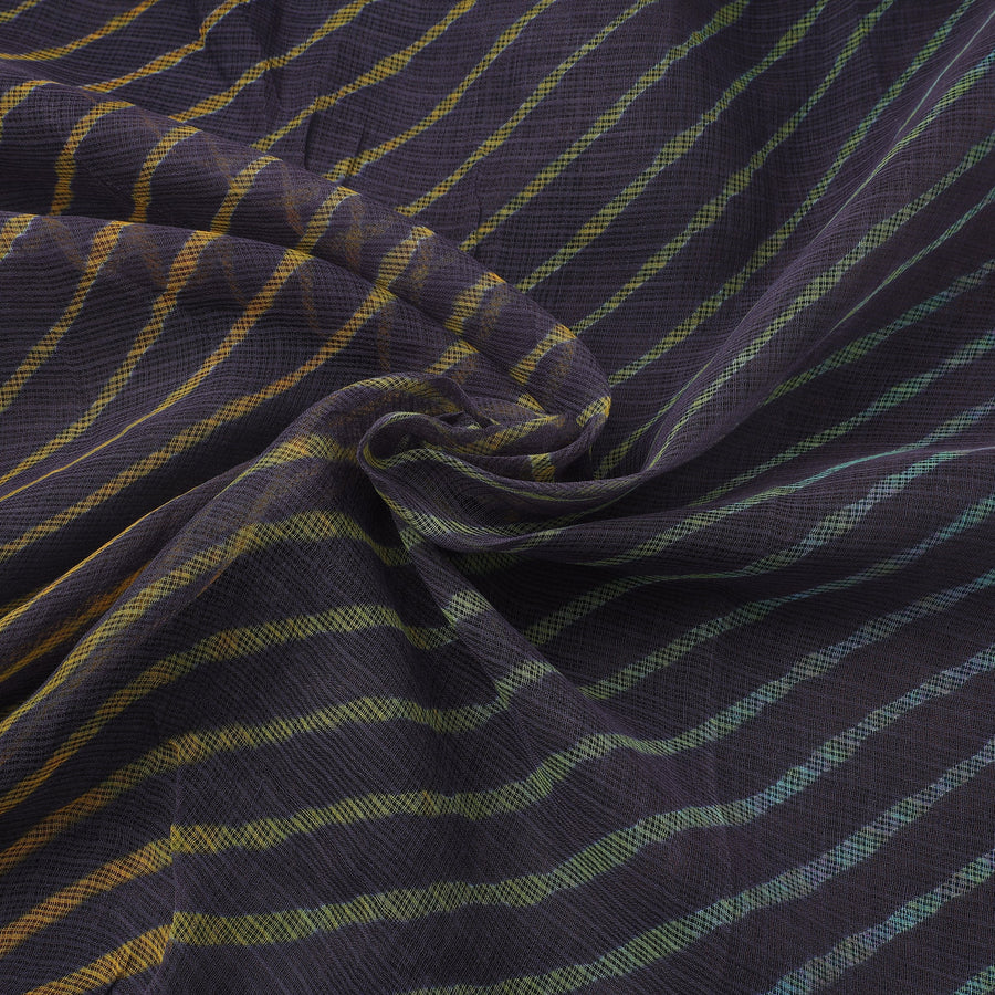 This fine quality purple original leheriya tie-dye kota doria cotton fabric. This fabric features wavy patterns created using the traditional leheriya tie & dye technique, dyed with azo-free dyes. It is handcrafted by the master artisan family of Badshah Miyan from the state of Rajasthan, known for their expertise in this traditional art form. Made from high-quality Kota Doria cotton, this fabric is lightweight, sheer, and perfect for creating stylish and unique garments. Add a touch of Rajasthan's rich cultural heritage to your wardrobe with this exquisite leheriya tie-dye Kota Doria fabric.