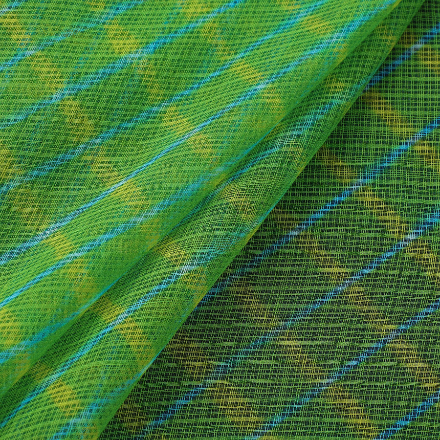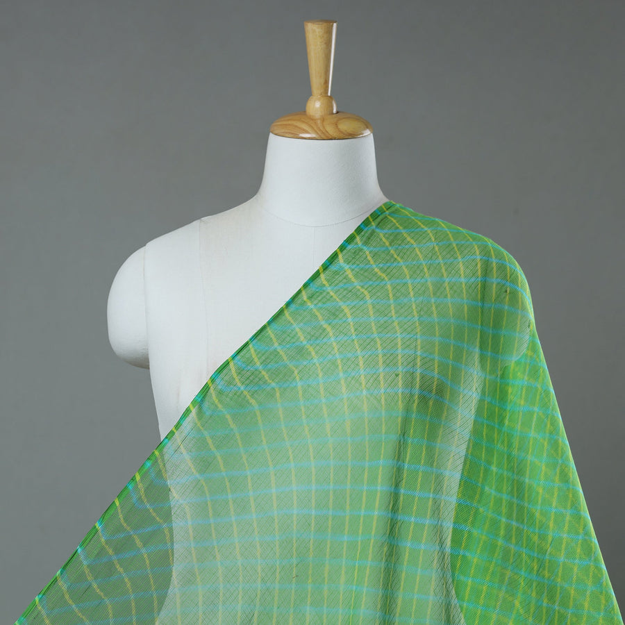 This fine quality green original leheriya tie-dye kota doria cotton fabric. This fabric features wavy patterns created using the traditional leheriya tie & dye technique, dyed with azo-free dyes. It is handcrafted by the master artisan family of Badshah Miyan from the state of Rajasthan, known for their expertise in this traditional art form. Made from high-quality Kota Doria cotton, this fabric is lightweight, sheer, and perfect for creating stylish and unique garments. Add a touch of Rajasthan's rich cultural heritage to your wardrobe with this exquisite leheriya tie-dye Kota Doria fabric.