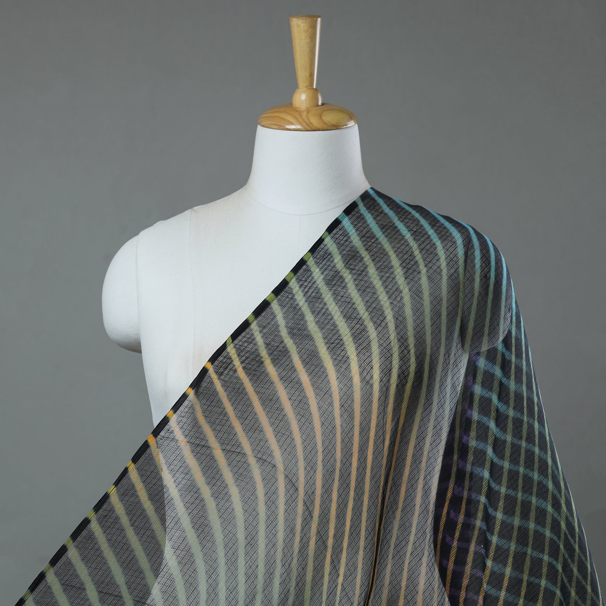 • Black Leheriya Tie-Dye Kota Doria Cotton Fabric