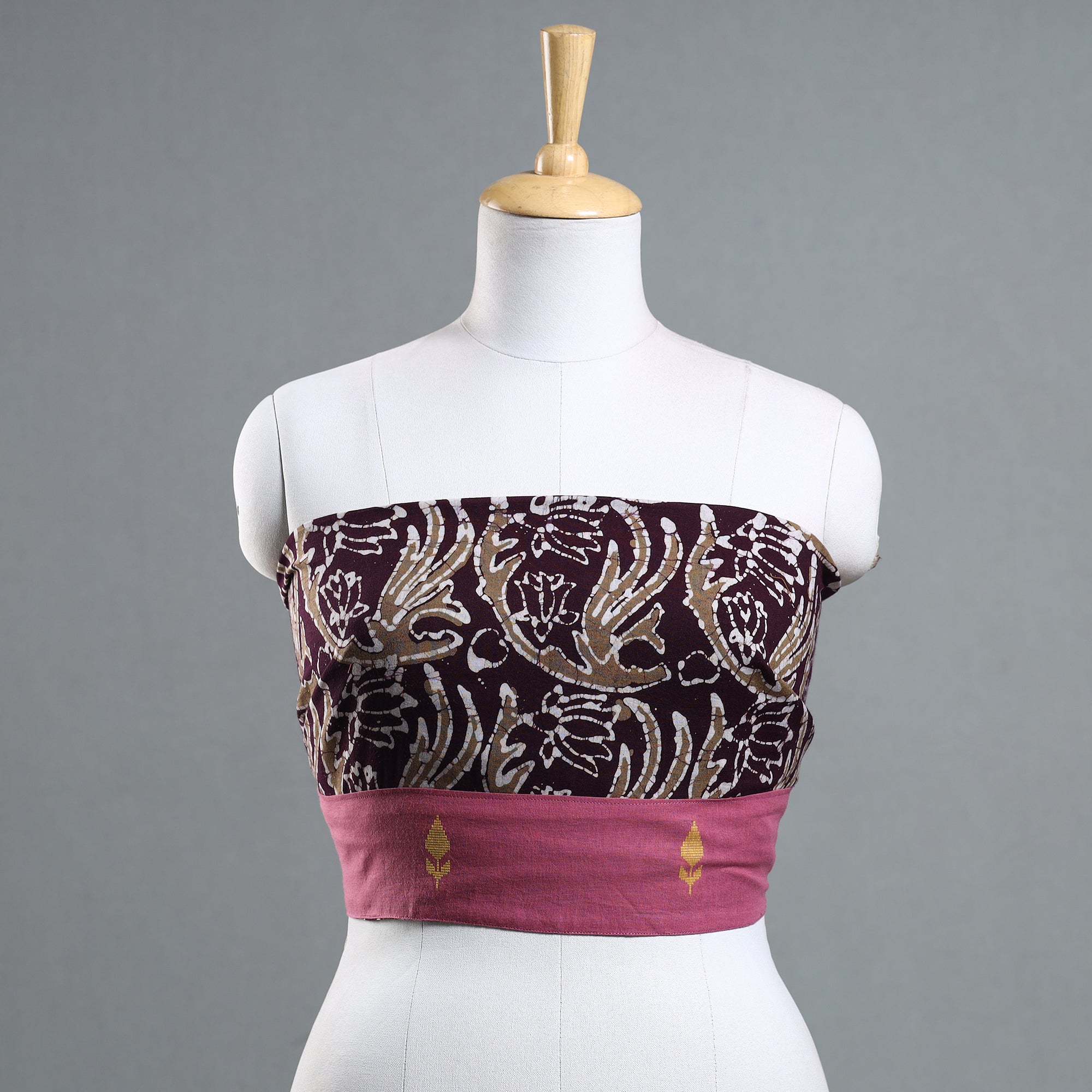 Fine quality maroon batik printed cotton blouse piece crafted with traditional handmade textiles of India. This mix and match blouse material is perfect to pair with any saree, adding a touch of elegance to your ensemble. Made with the finest quality materials, this blouse material ensures comfort and style, making it a must-have addition to your wardrobe.