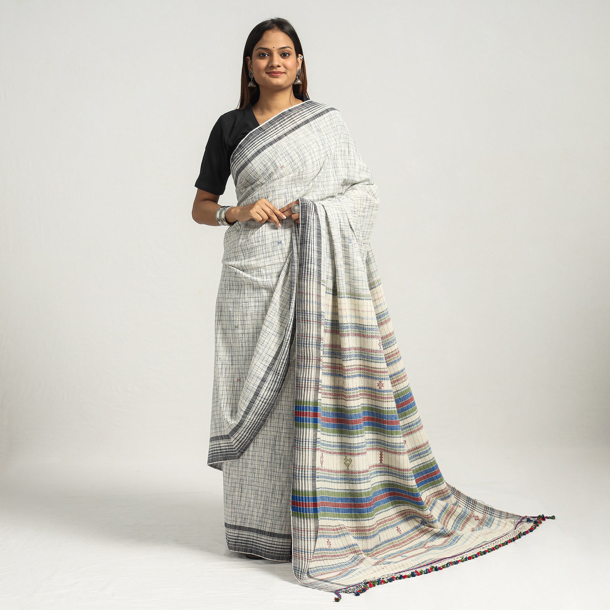 This handloom kutch bhujodi weaving saree made of 100% certified organic cotton with azo-free dyes, this saree is eco-friendly and also provides a softer feel. 'Bhujodi' weaving is a craft that takes its name from 'Bhujodi', a small village in 'Kutch' where this craft is practiced. This village of weavers is famous for its exquisitely woven traditional.