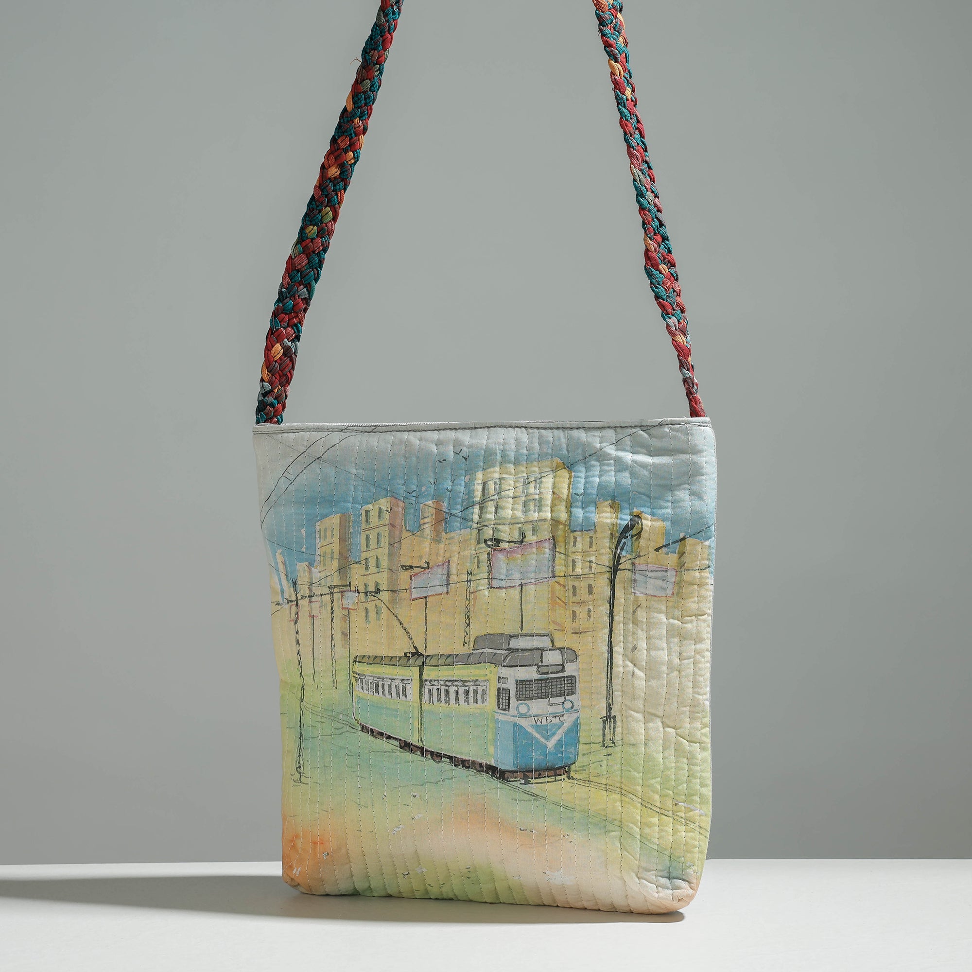 Indulge the beautifully multicolor handcrafted gamcha fabric cotton handpainted sling bag by Rangila Dhaga. It has one zipper pocket inside. This exquisite sling bag is a true testament to the skilled craftsmanship and artistic vision of the artisans behind it. Made from soft and durable gamcha fabric, this handpainted sling bag offers a unique contemporary style.