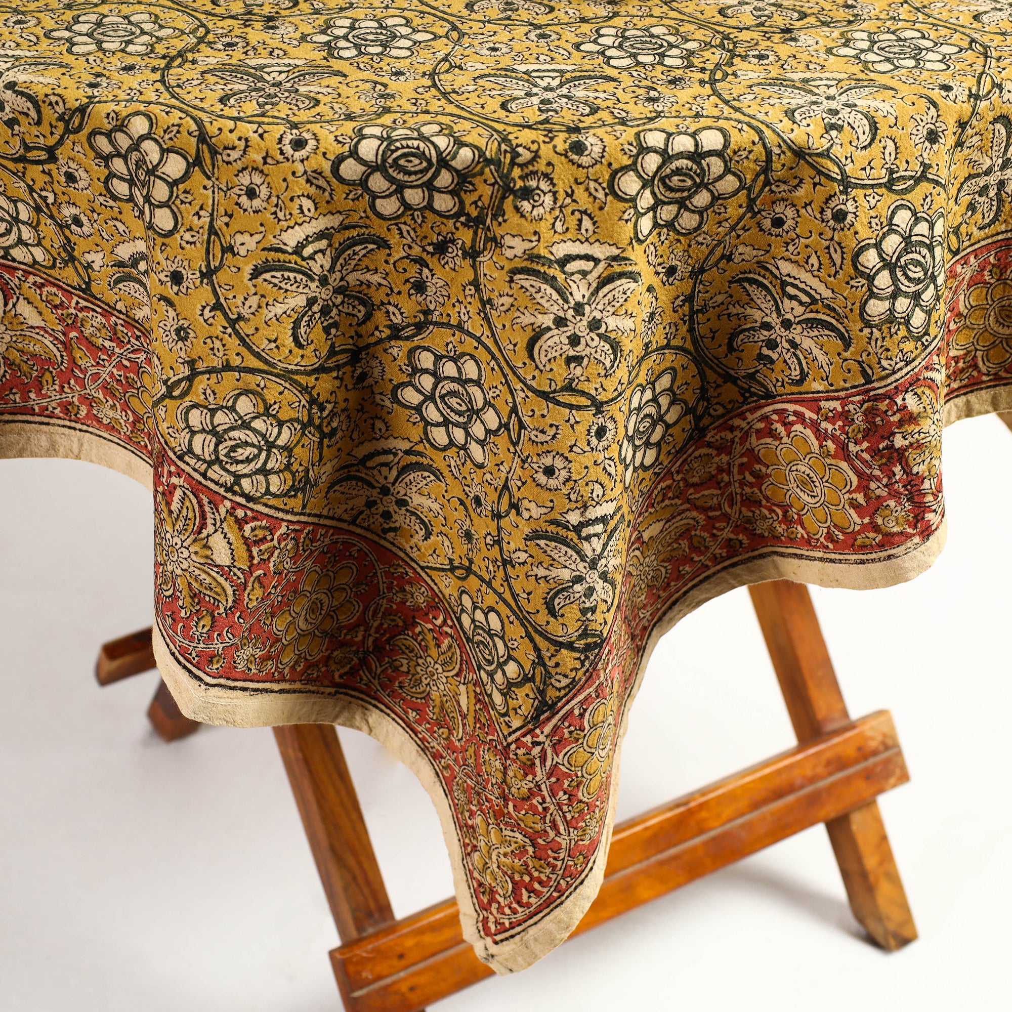 • Yellow Original Pedana Kalamkari Block Printed Cotton Table Cover