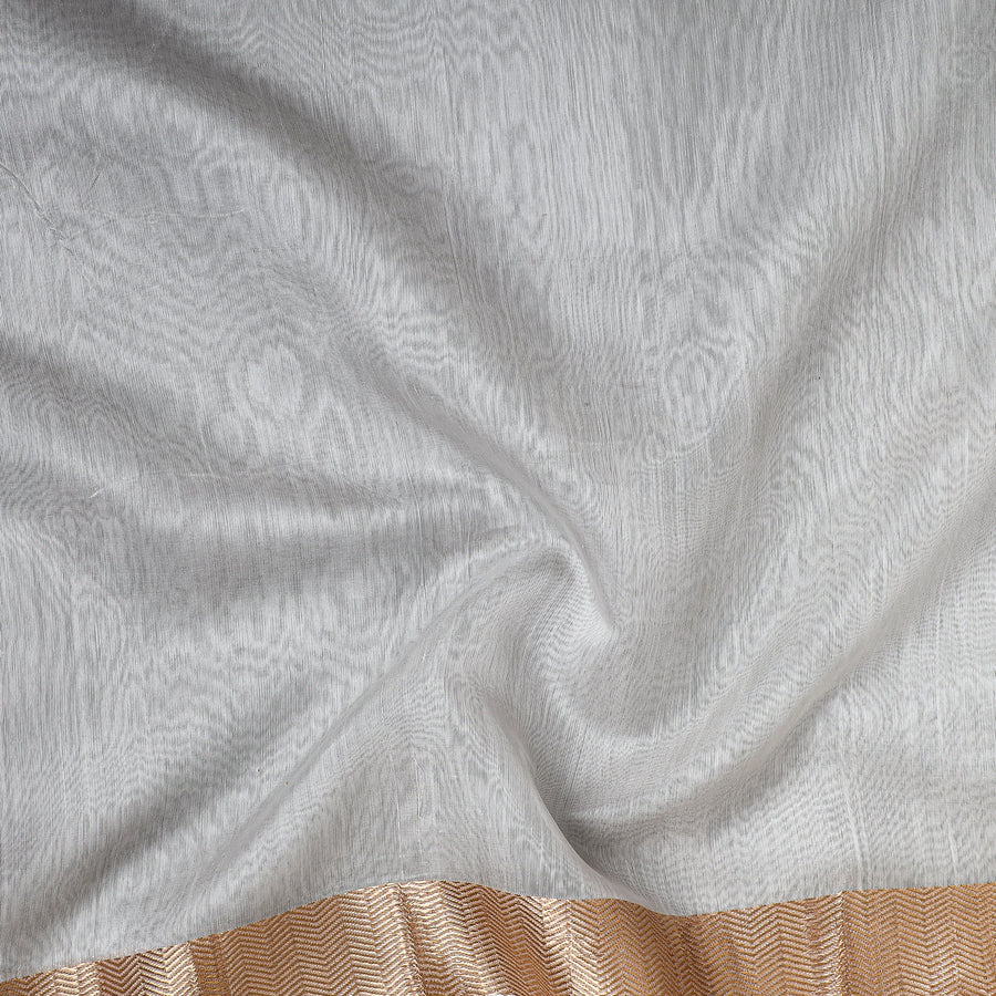 Grey - Traditional Maheshwari Silk Handloom Fabric with Zari Border