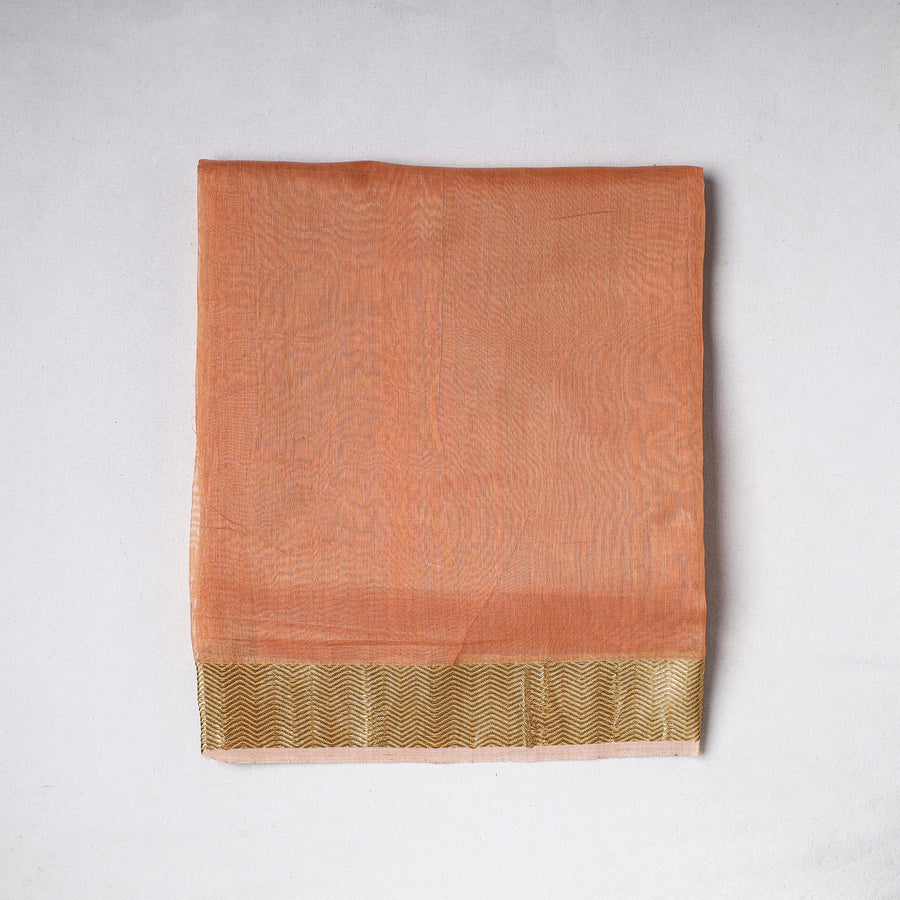 Experience the beauty of traditional brown chanderi silk-cotton handloom precut fabric woven by master artisan Rauph Khan. Perfect for crafting elegant dev vastras, blouses, decorative items, etc This exquisite textile symbolizes timeless sophistication and cultural richness, adding a touch of elegance to any wardrobe.