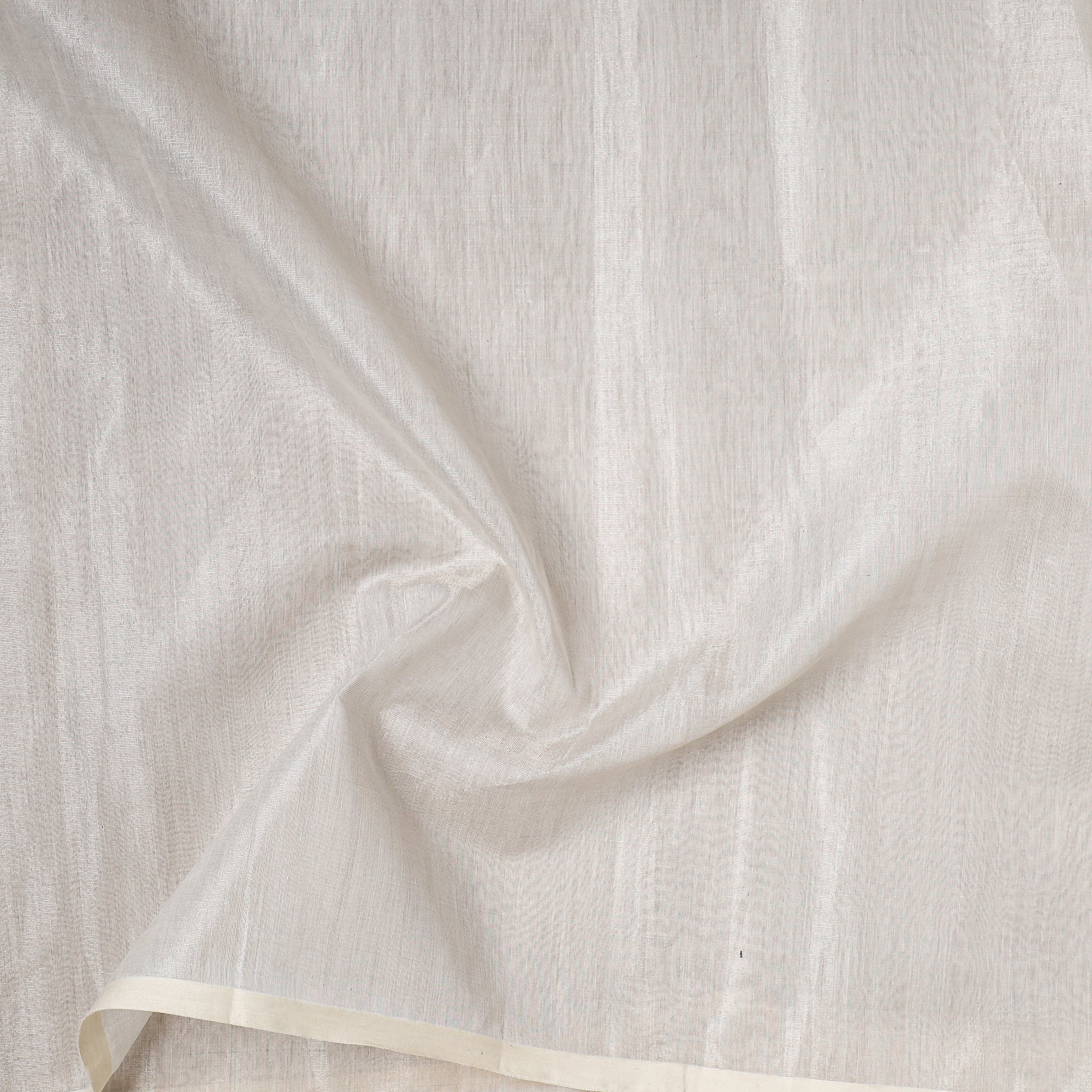 Experience the beauty of traditional white chanderi silk-cotton handloom precut fabric woven by master artisan Rauph Khan. Perfect for crafting elegant dev vastras, blouses, decorative items, etc This exquisite textile symbolizes timeless sophistication and cultural richness, adding a touch of elegance to any wardrobe.