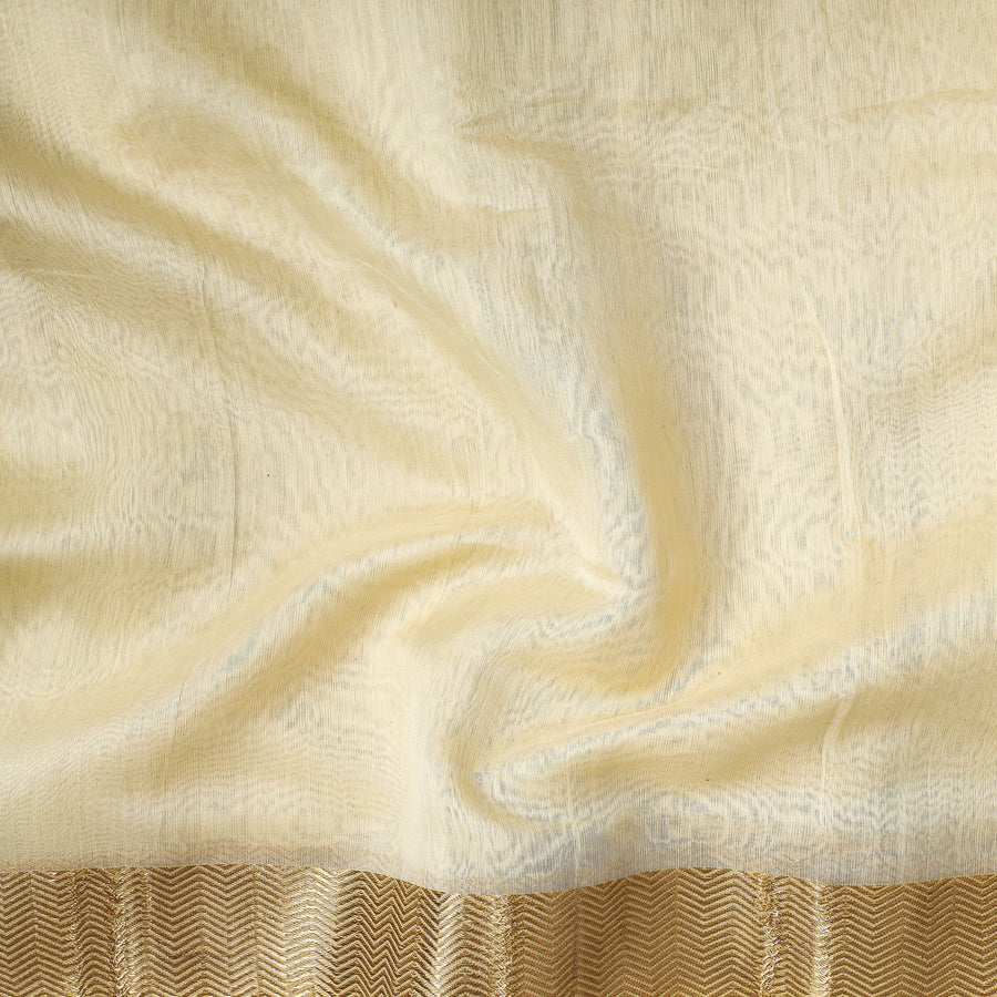 Experience the beauty of traditional beige chanderi silk-cotton handloom precut fabric woven by master artisan Rauph Khan. Perfect for crafting elegant dev vastras, blouses, decorative items, etc This exquisite textile symbolizes timeless sophistication and cultural richness, adding a touch of elegance to any wardrobe.