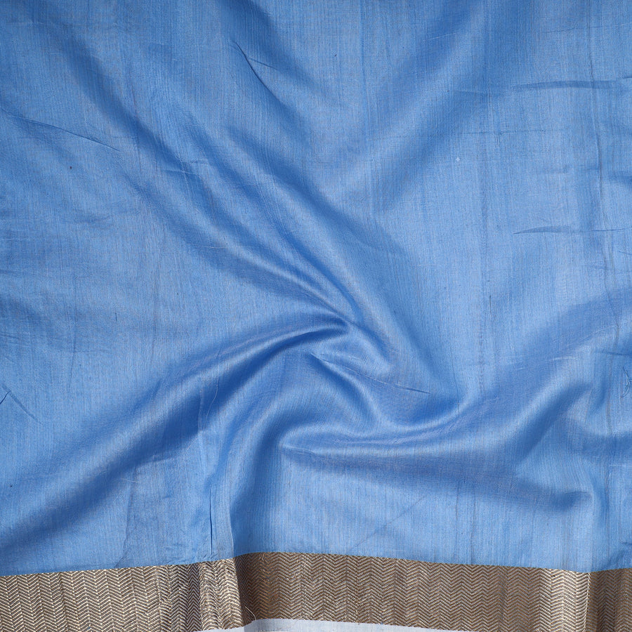 Experience the beauty of traditional blue chanderi silk-cotton handloom precut fabric woven by master artisan Rauph Khan. Perfect for crafting elegant dev vastras, blouses, decorative items, etc This exquisite textile symbolizes timeless sophistication and cultural richness, adding a touch of elegance to any wardrobe.