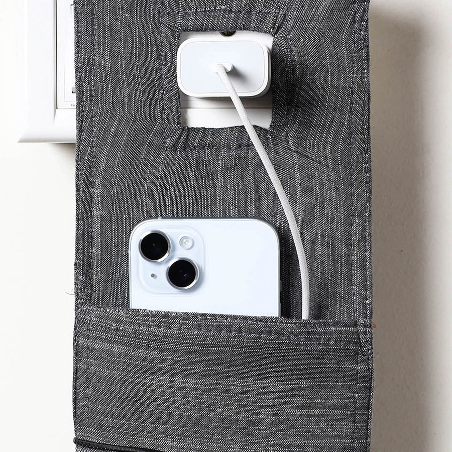 Grey Handmade plain mobile charging holder made up with cotton fabric. Premium-quality fabric is used to make it soft and comfy. It's quite handy and portable while traveling. It keeps your phone safe and protected. It's very convenient during charging your mobile phone. It comes in different colors.