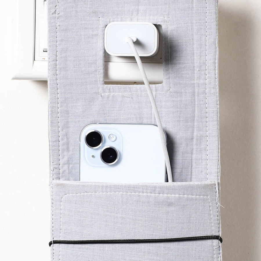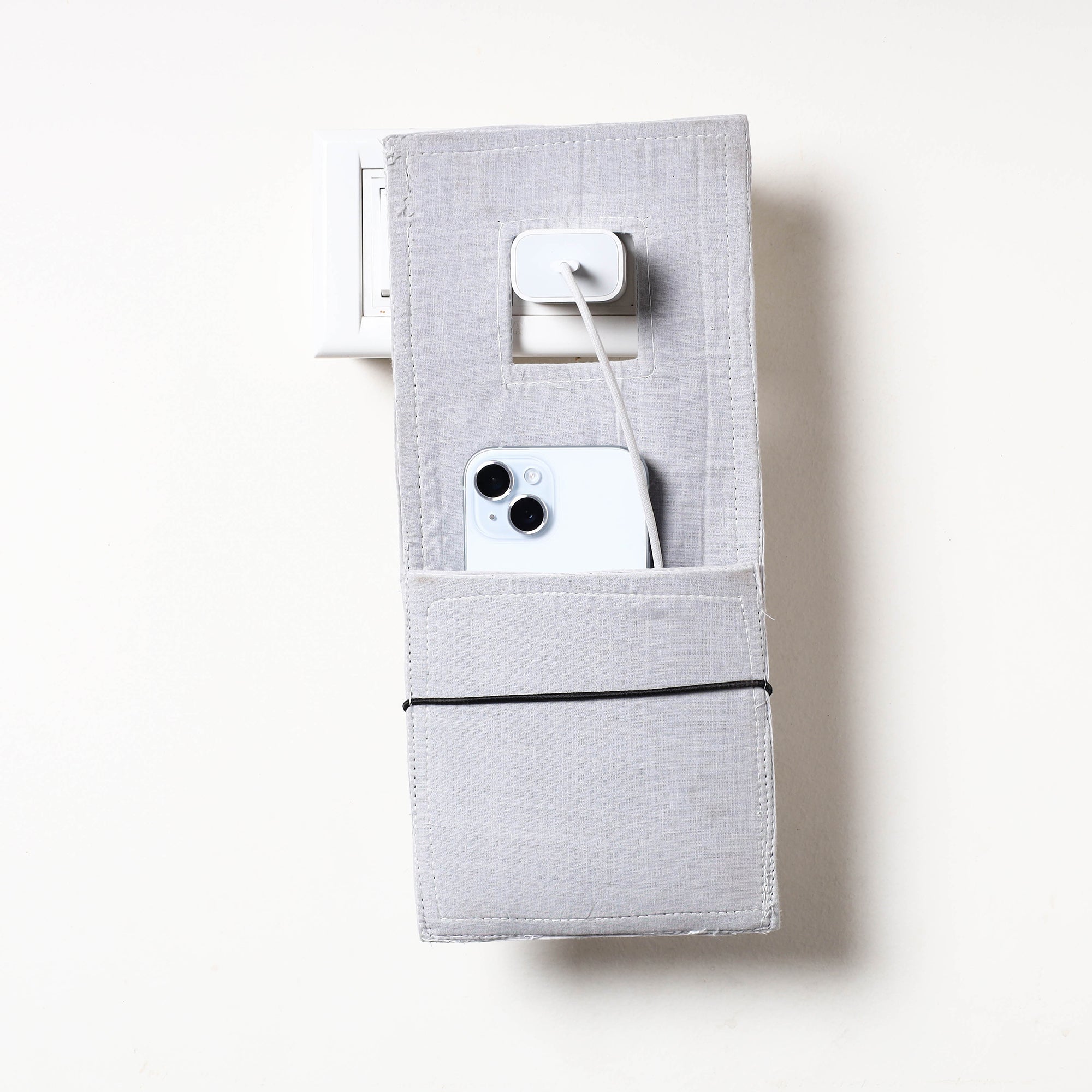 Grey Handmade plain mobile charging holder made up with cotton fabric. Premium-quality fabric is used to make it soft and comfy. It's quite handy and portable while traveling. It keeps your phone safe and protected. It's very convenient during charging your mobile phone. It comes in different colors.