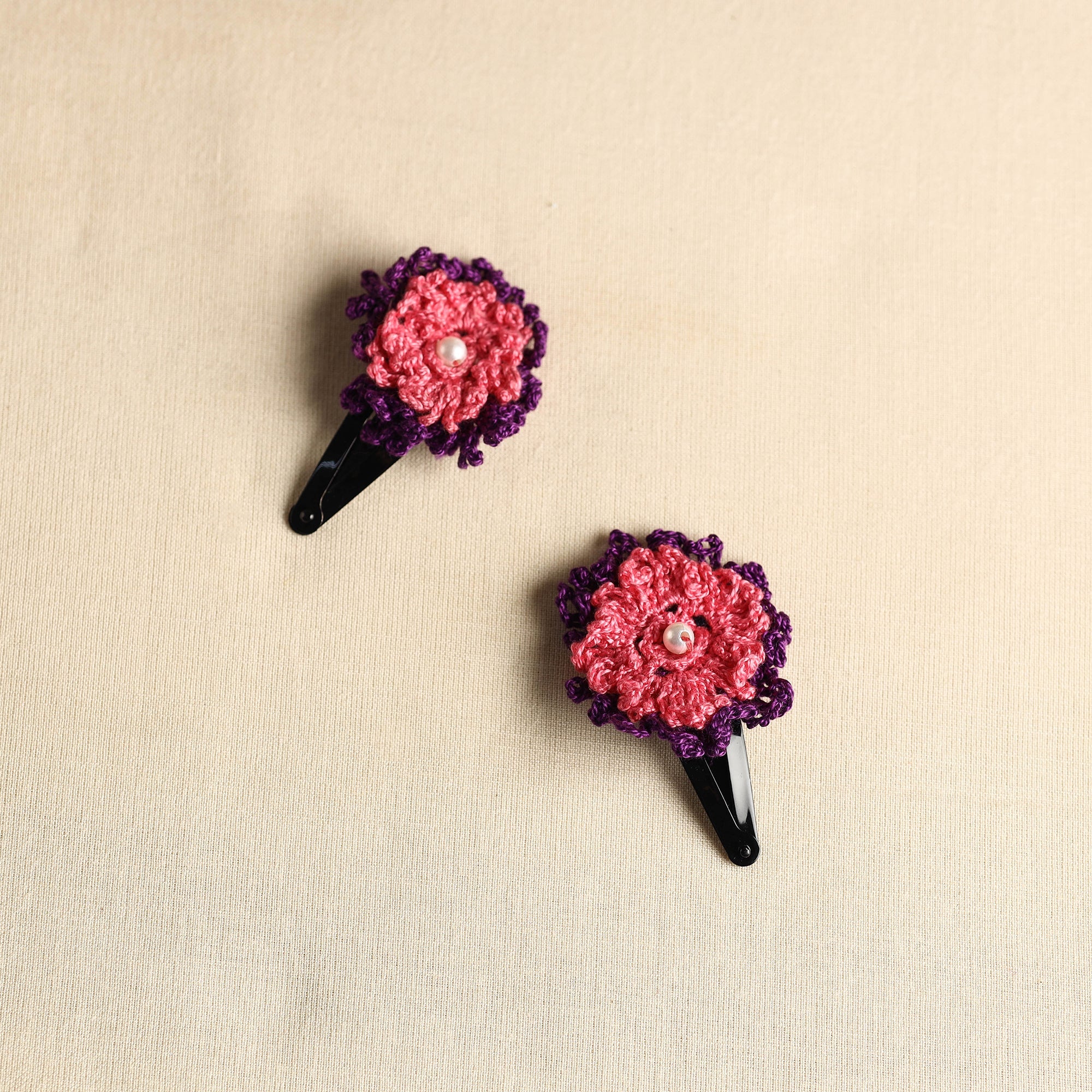 Elevate your hairdo with our handmade pink crochet tik-tak hair clip, a charming accessory crafted with precision and care. Perfect for securing loose locks or embellishing ponytails, it effortlessly elevates your look with a trendy, handmade touch.