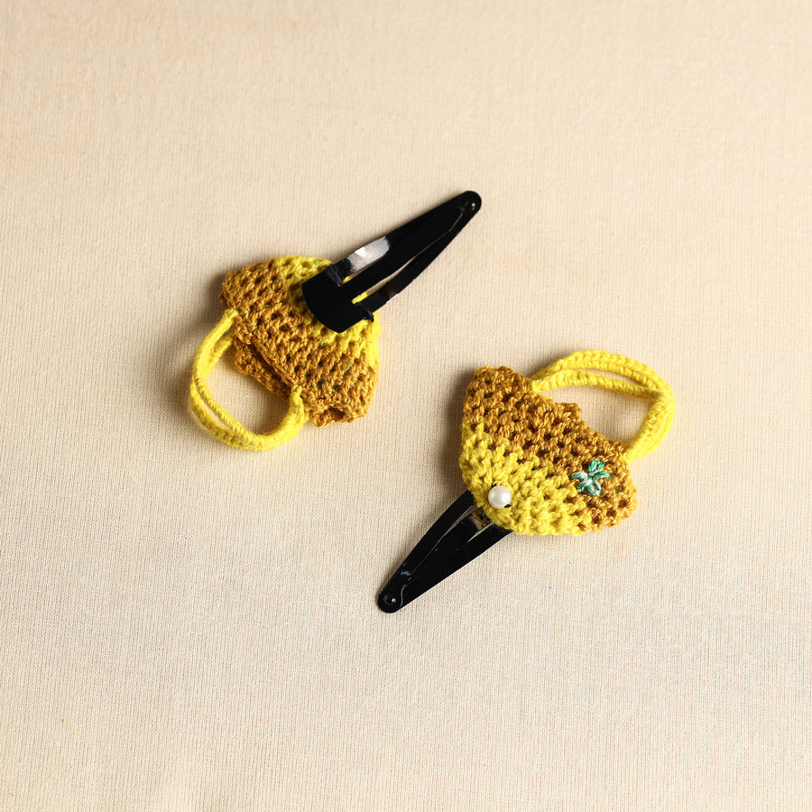 Elevate your hairdo with our handmade yellow crochet tik-tak hair clip, a charming accessory crafted with precision and care. Perfect for securing loose locks or embellishing ponytails, it effortlessly elevates your look with a trendy, handmade touch.