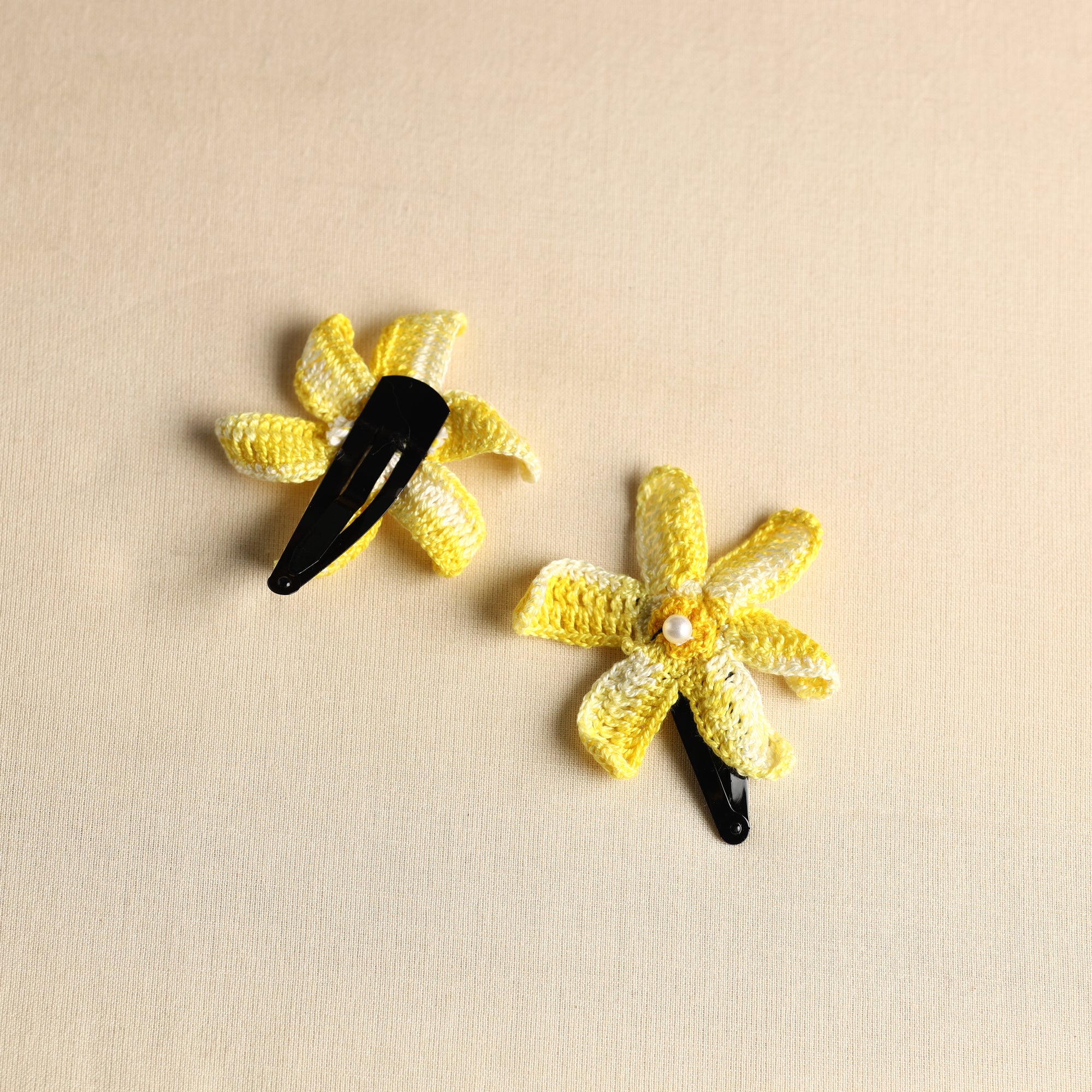 Elevate your hairdo with our handmade yellow crochet tik-tak hair clip, a charming accessory crafted with precision and care. Perfect for securing loose locks or embellishing ponytails, it effortlessly elevates your look with a trendy, handmade touch.