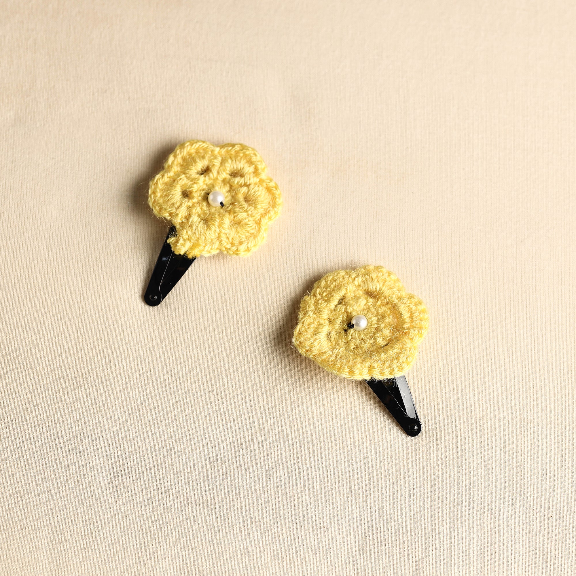 Elevate your hairdo with our handmade yellow crochet tik-tak hair clip, a charming accessory crafted with precision and care. Perfect for securing loose locks or embellishing ponytails, it effortlessly elevates your look with a trendy, handmade touch.