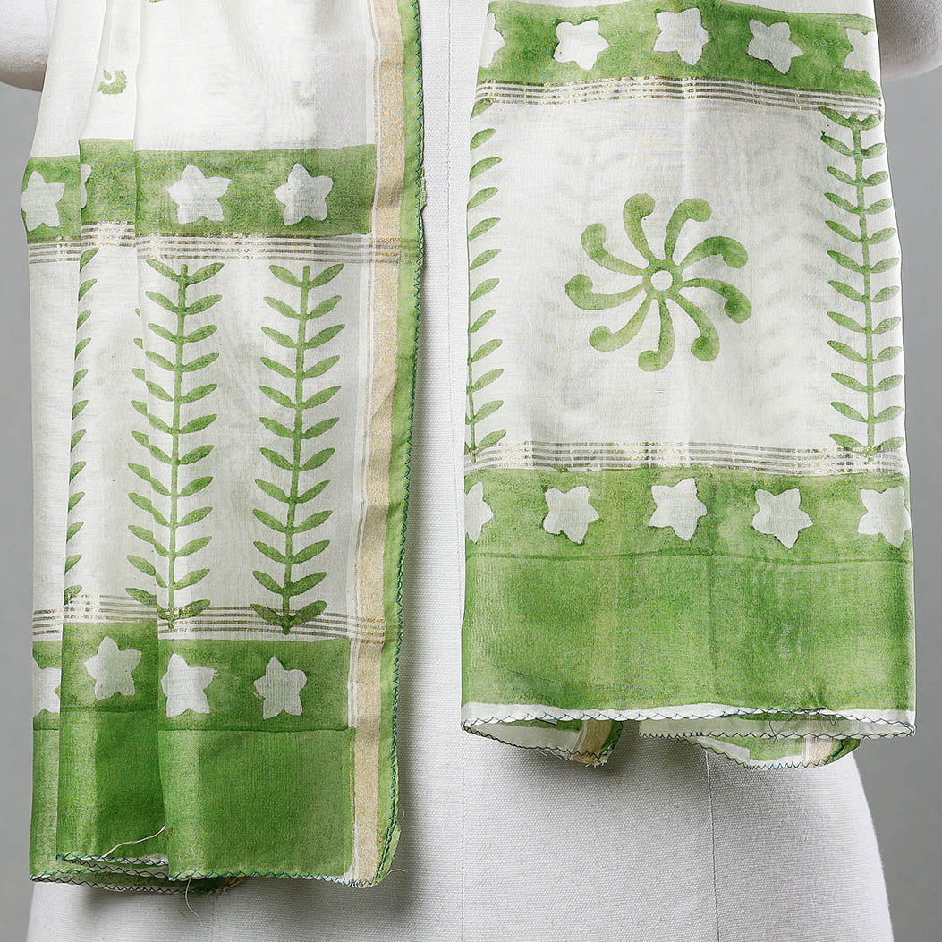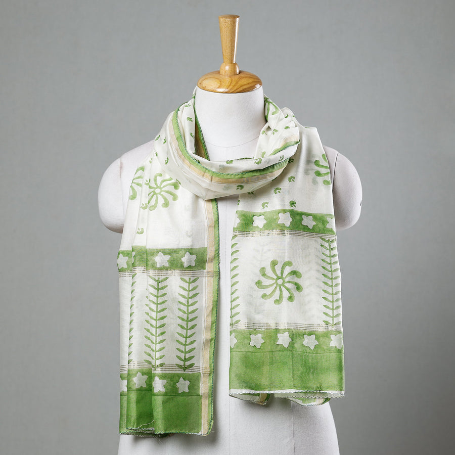 Experience the rich heritage of Rajasthan with our Sanganeri hand block printed chanderi silk-cotton handloom stole featuring a stunning zari border. This stole is meticulously crafted from luxurious Chanderi silk-cotton, known for its gossamer looks and amazing feel. The bleed-free VAT dyes ensure lasting vibrancy. The elaborate detailing of the flowers and petals showcases the artistry of this hand-block printing technique originating from Sanganer, Rajasthan. Embrace timeless elegance and support artisanal craftsmanship with this unique accessory.