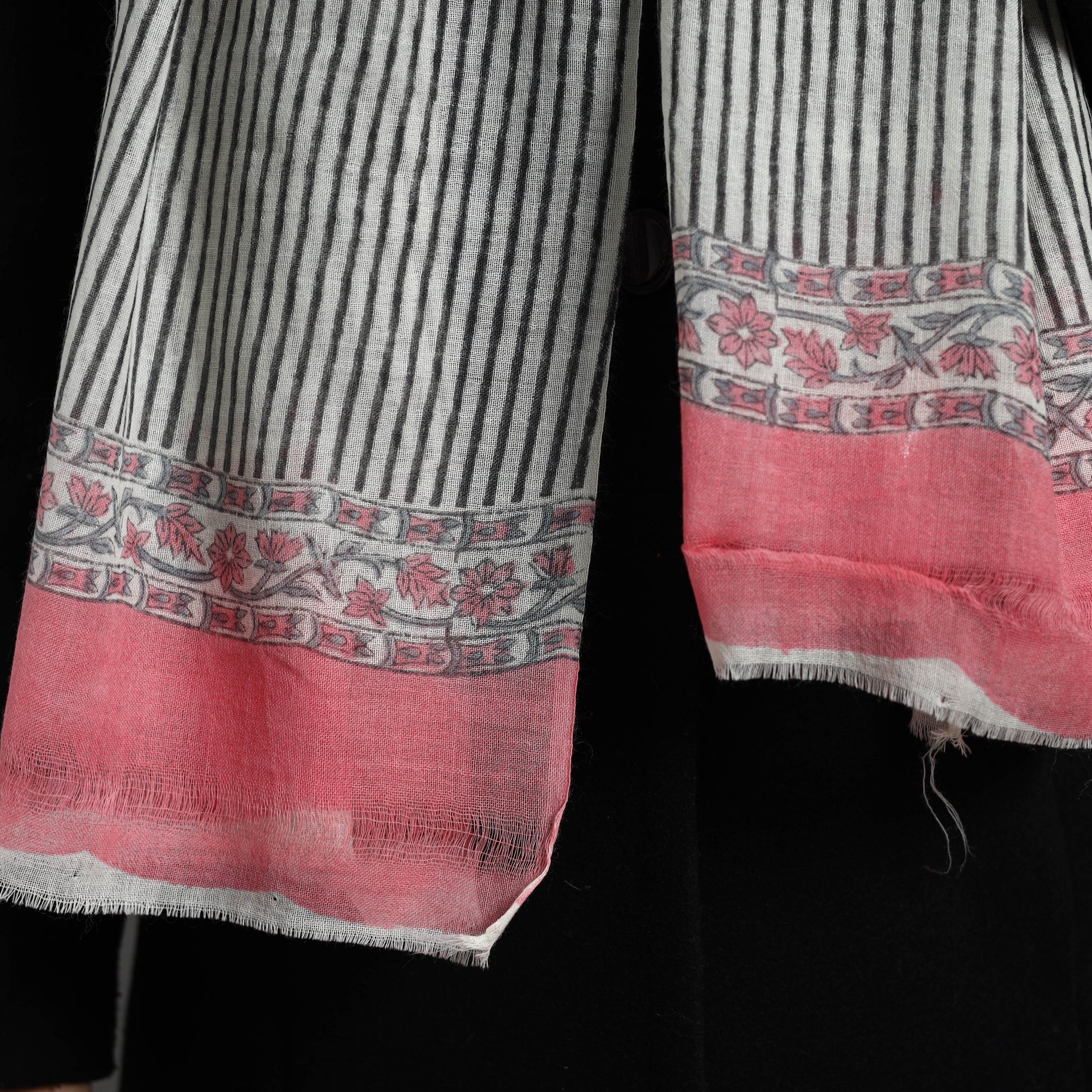 Experience the rich heritage of Rajasthan with our pure wool white block print sanganeri stole. The pure wool construction offers exceptional warmth and softness, making it perfect for cold weather. The bleed-free VAT dyes ensure lasting vibrancy. The elaborate detailing of the flowers and petals showcases the artistry of this hand-block printing technique originating from Sanganer, Rajasthan. Embrace timeless elegance and support artisanal craftsmanship with this unique accessory.