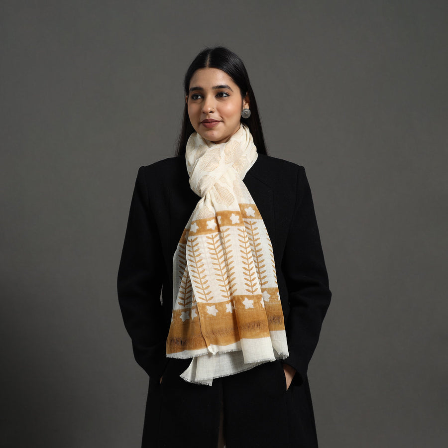 Experience the rich heritage of Rajasthan with our pure wool brown block print sanganeri stole. The pure wool construction offers exceptional warmth and softness, making it perfect for cold weather. The bleed-free VAT dyes ensure lasting vibrancy. The elaborate detailing of the flowers and petals showcases the artistry of this hand-block printing technique originating from Sanganer, Rajasthan. Embrace timeless elegance and support artisanal craftsmanship with this unique accessory.