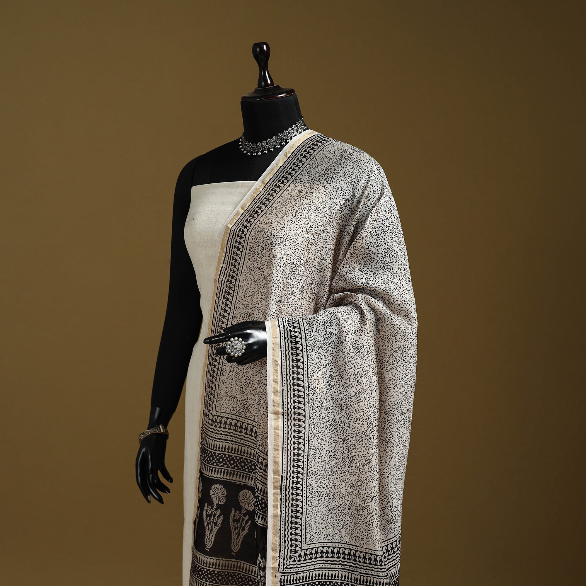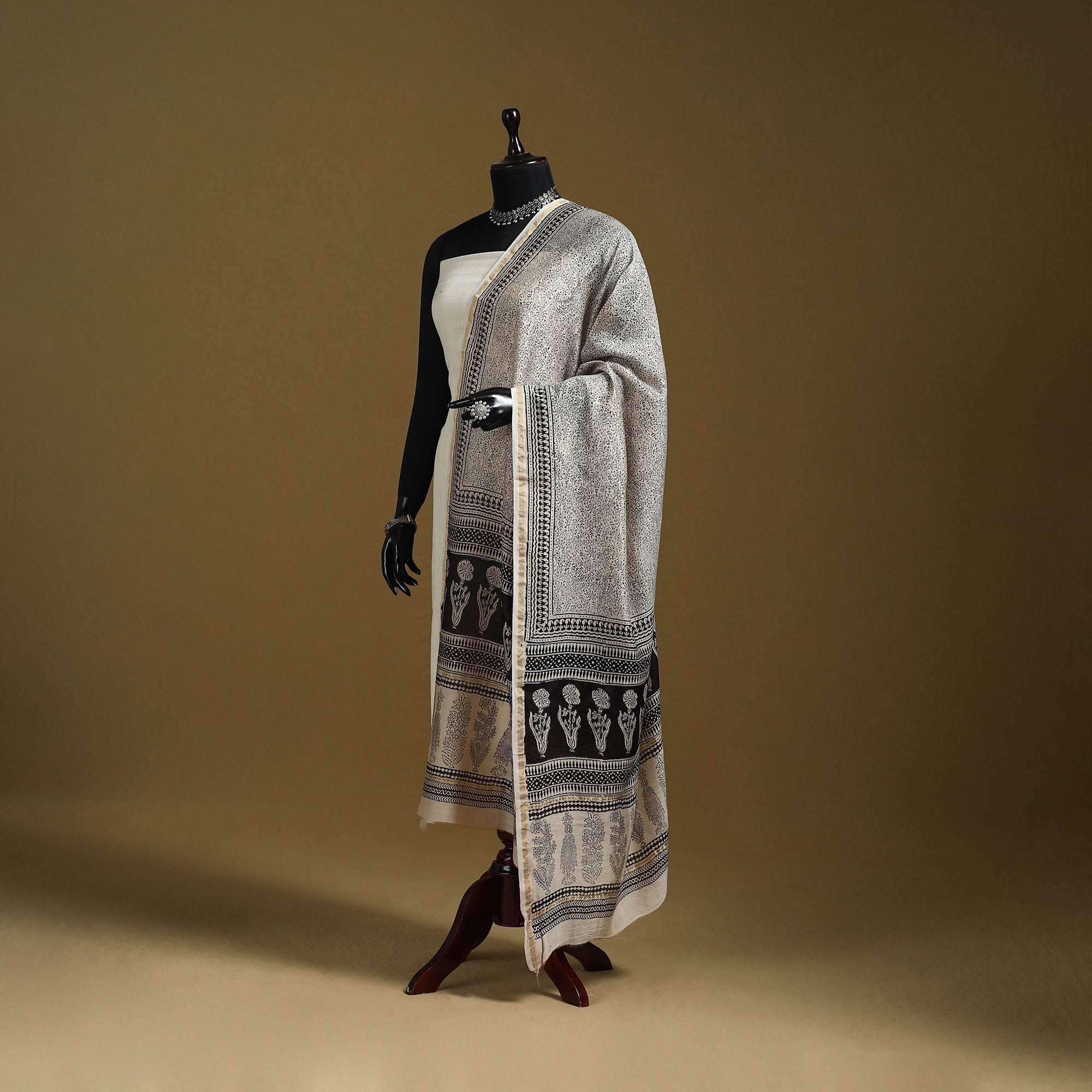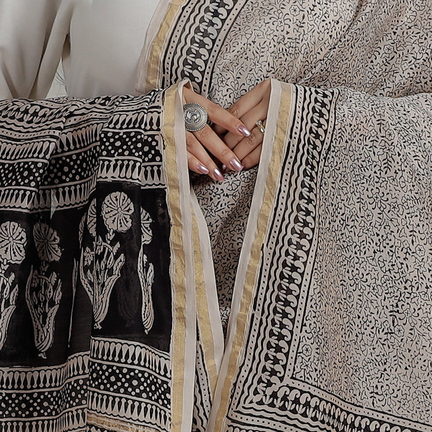 This exquisite beige bagh hand block printed natural dyed chanderi silk cotton dupatta with zari border a fine creation by artisan Mohammed Rafik Ji Khatri from Bagh, the Dhar district of Madhya Pradesh. Crafted with utmost care and precision, this elegant accessory showcases traditional artistry. The intricate block prints and natural dyes add charm to the dupatta, making it a must-have addition to your wardrobe.