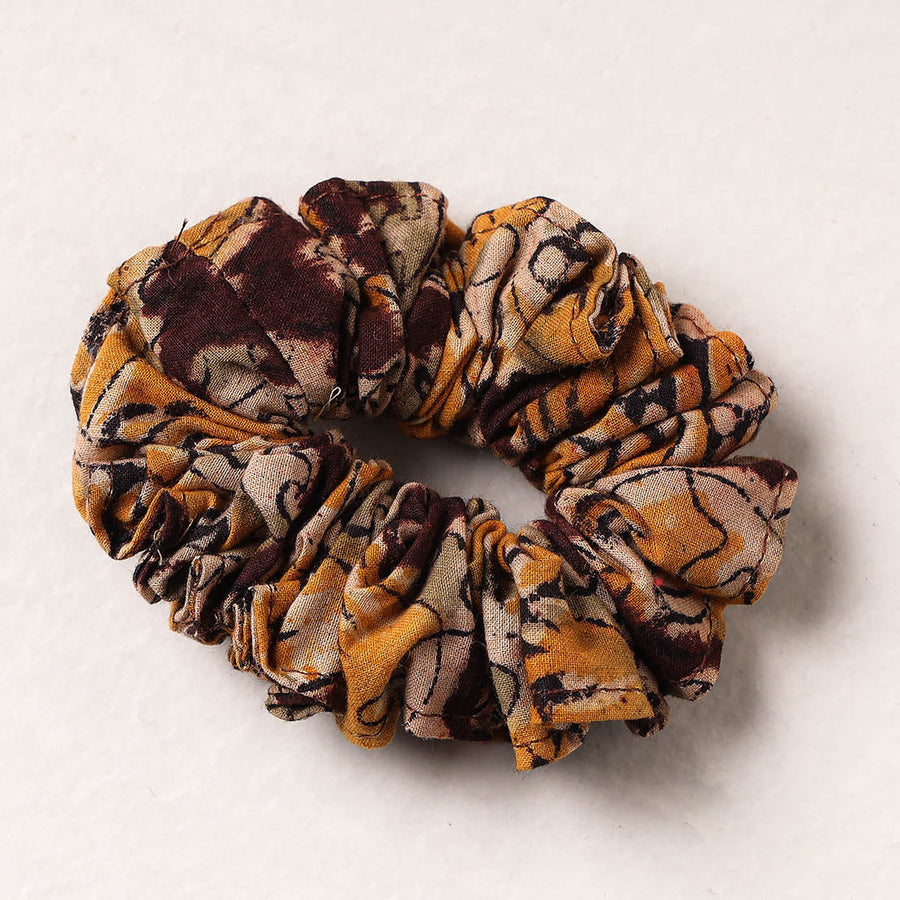 Hair scrunchie is made of Kalamkari cotton fabric, have good texture, soft & each scrunchie comes with a durable rubber hair band. This scrunchie give your outfits a smart twist by tying them around basic ponytails, add them to the ends of braids, or top off your top-knots with them.