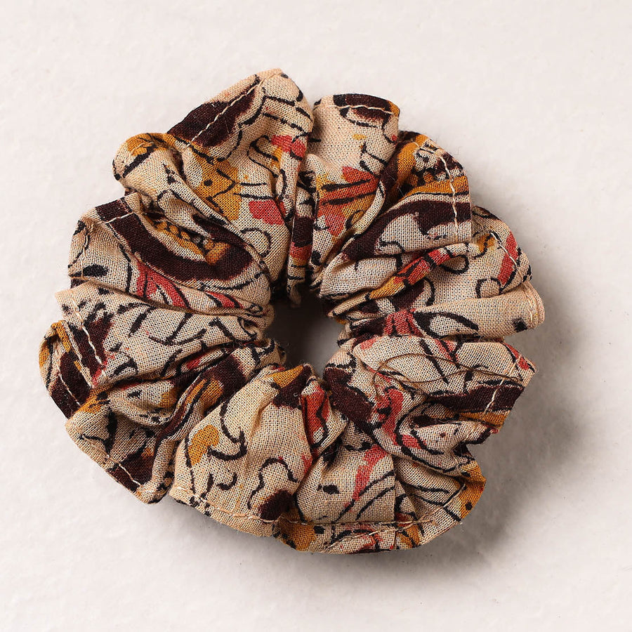 Hair scrunchie is made of Kalamkari cotton fabric, have good texture, soft & each scrunchie comes with a durable rubber hair band. This scrunchie give your outfits a smart twist by tying them around basic ponytails, add them to the ends of braids, or top off your top-knots with them.