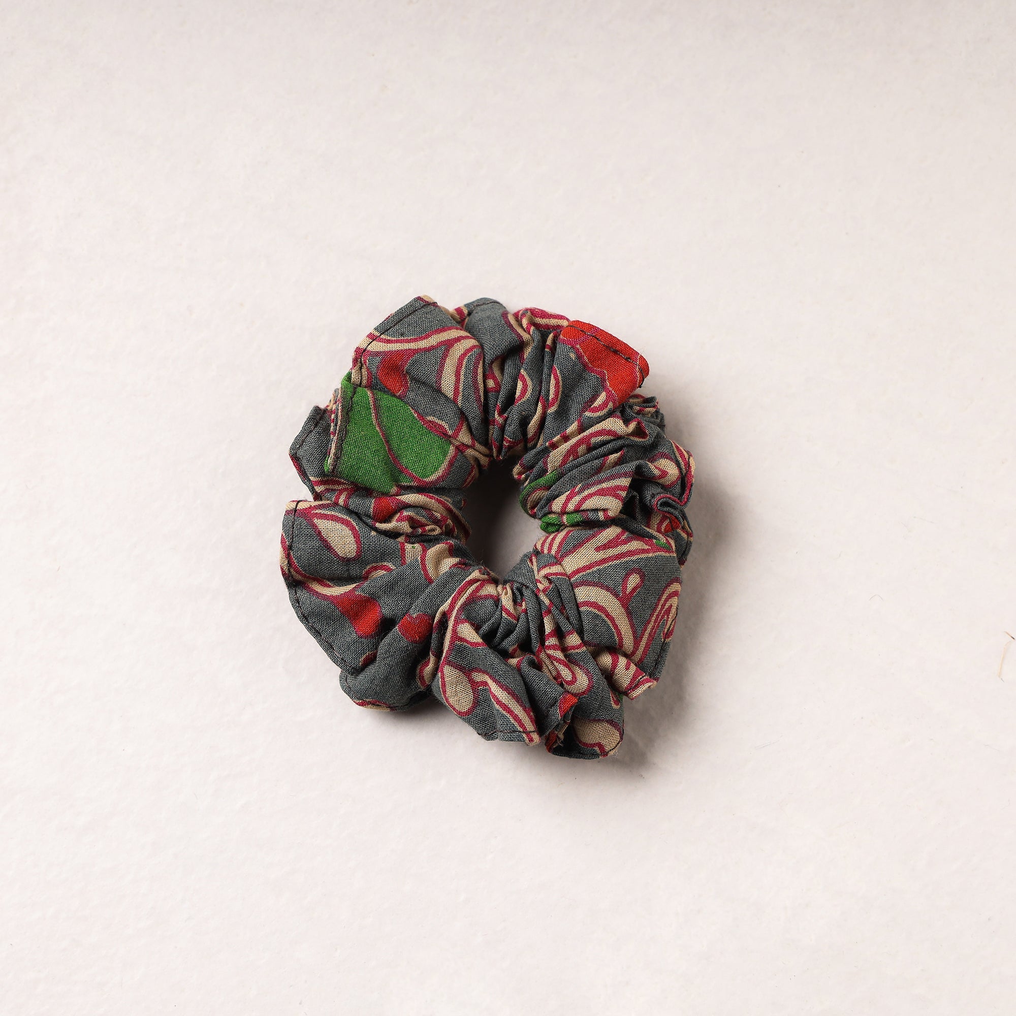Hair scrunchie scarf is made of kalamkari cotton fabrics, have good texture, soft & each scrunchie comes with a durable rubber hair band. This scrunchie give your outfits a smart twist by tying them around basic ponytails, add them to the ends of braids, or top off your top-knots with them.