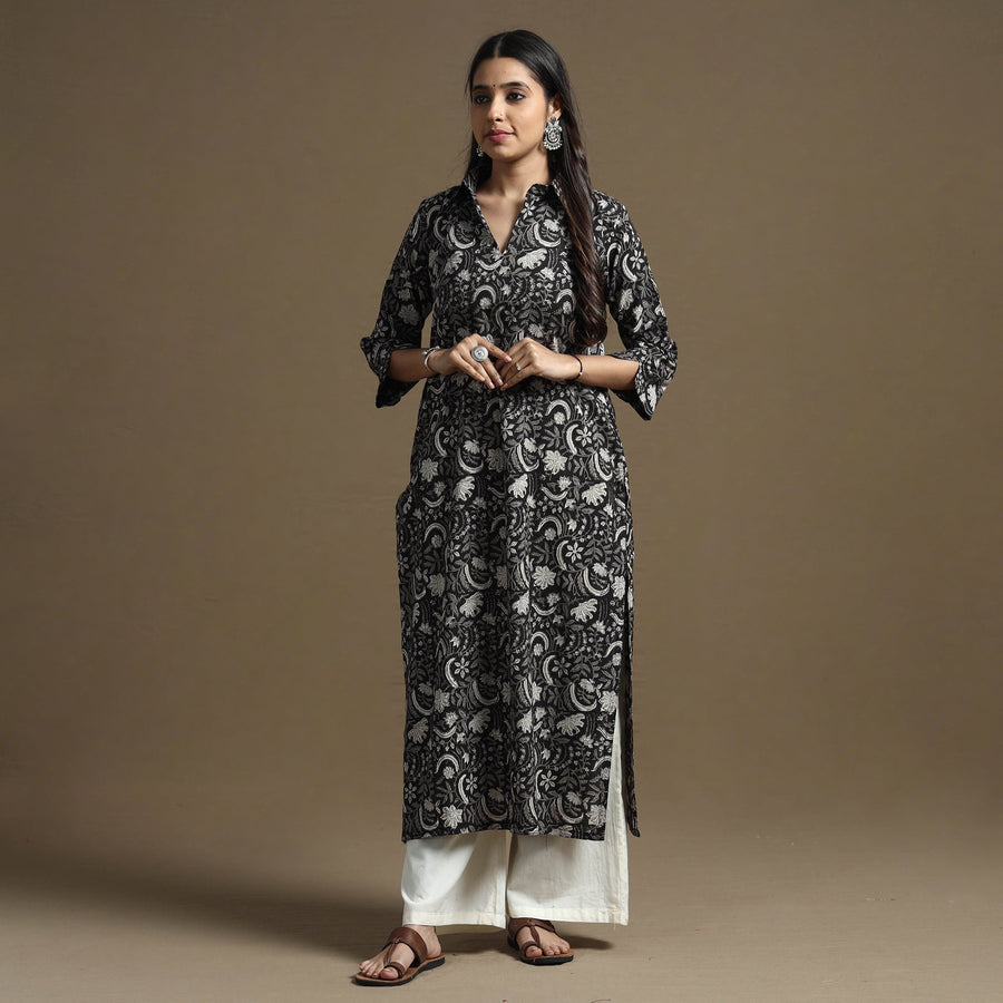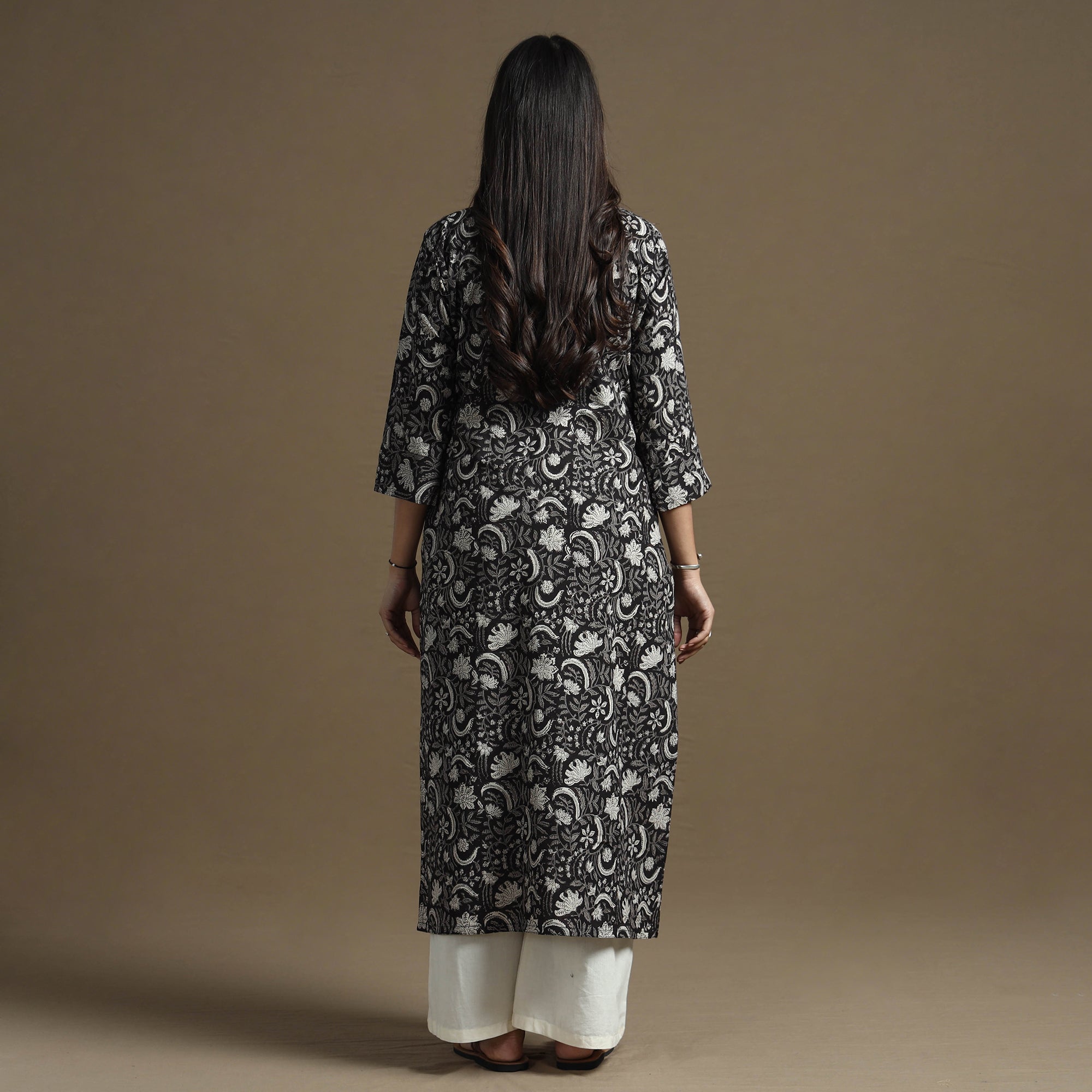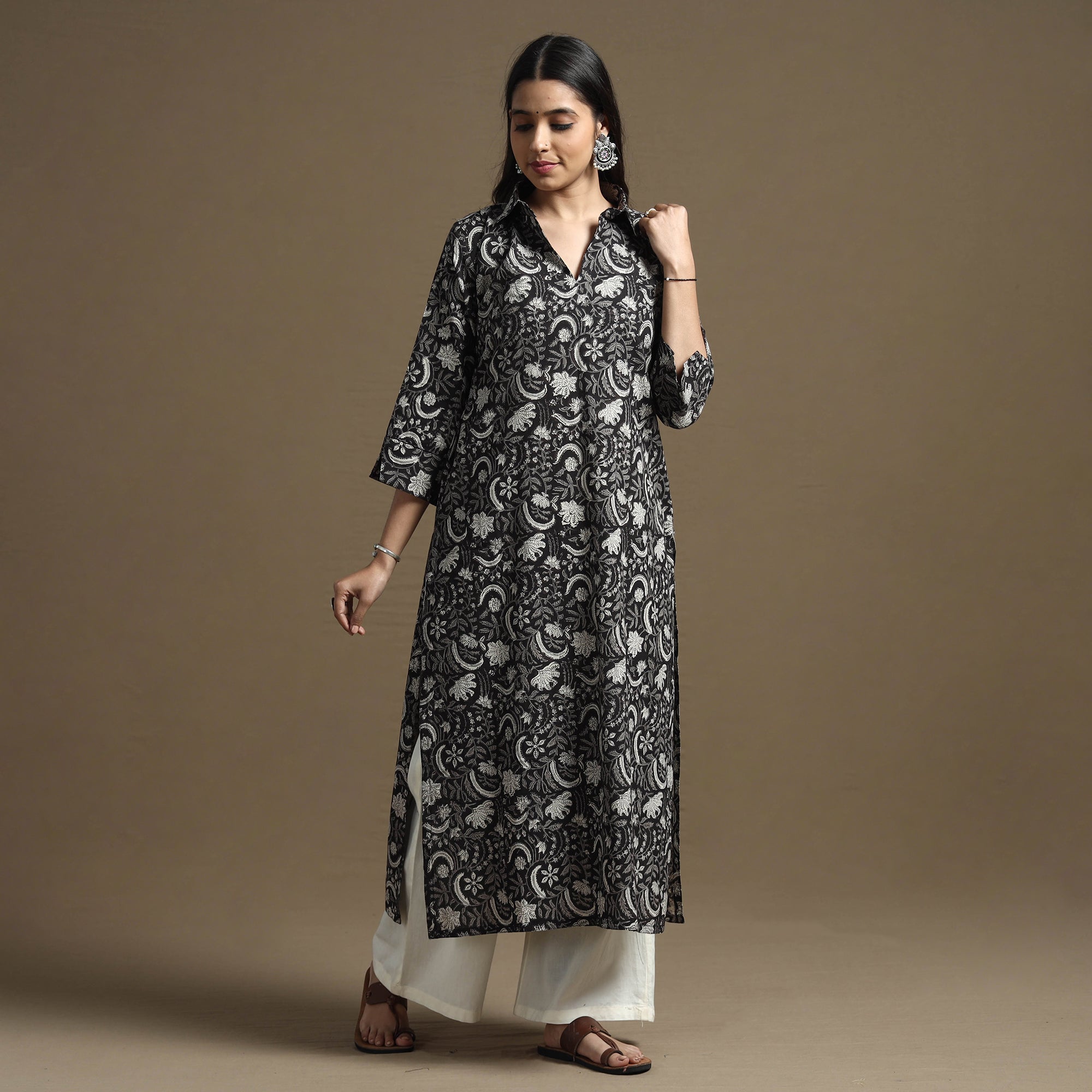 This fine-quality bagru hand-block printed cotton straight kurta is made using naturally dyed cotton fabric through the traditional mud resist process by using hand-carved wooden blocks practiced in Bagru, Rajasthan. This kurta features intricate patterns created by hand-carved wooden blocks. With a side pocket for added convenience, this kurta is both stylish and practical. Perfect for any occasion, its lightweight cotton fabric ensures comfort all day long.