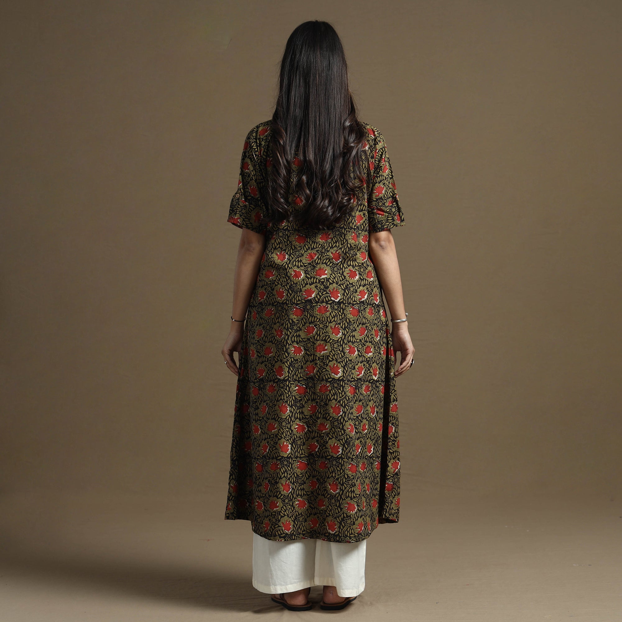 This fine-quality bagru hand-block printed cotton a-line kurta is made using naturally dyed cotton fabric through the traditional mud resist process by using hand-carved wooden blocks practiced in Bagru, Rajasthan. This kurta features intricate patterns created by hand-carved wooden blocks. With a side pocket for added convenience, this kurta is both stylish and practical. Perfect for any occasion, its lightweight cotton fabric ensures comfort all day long.