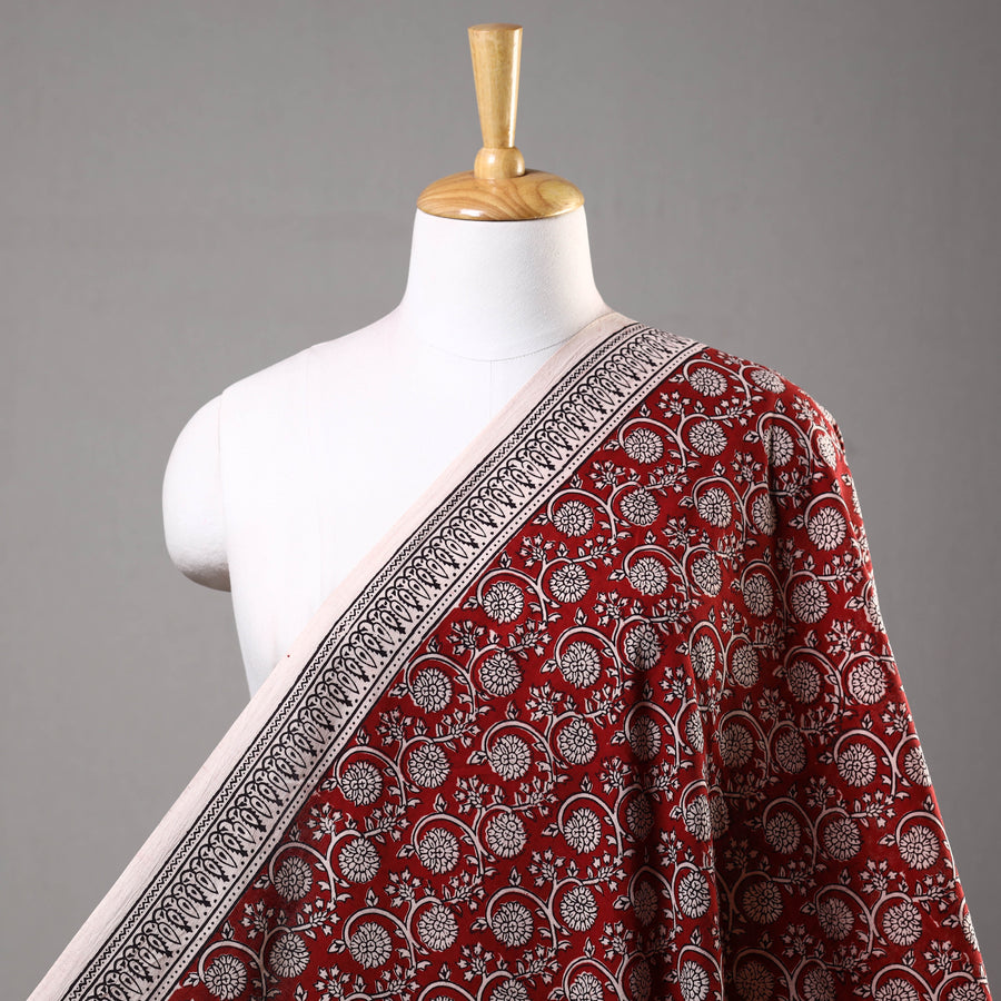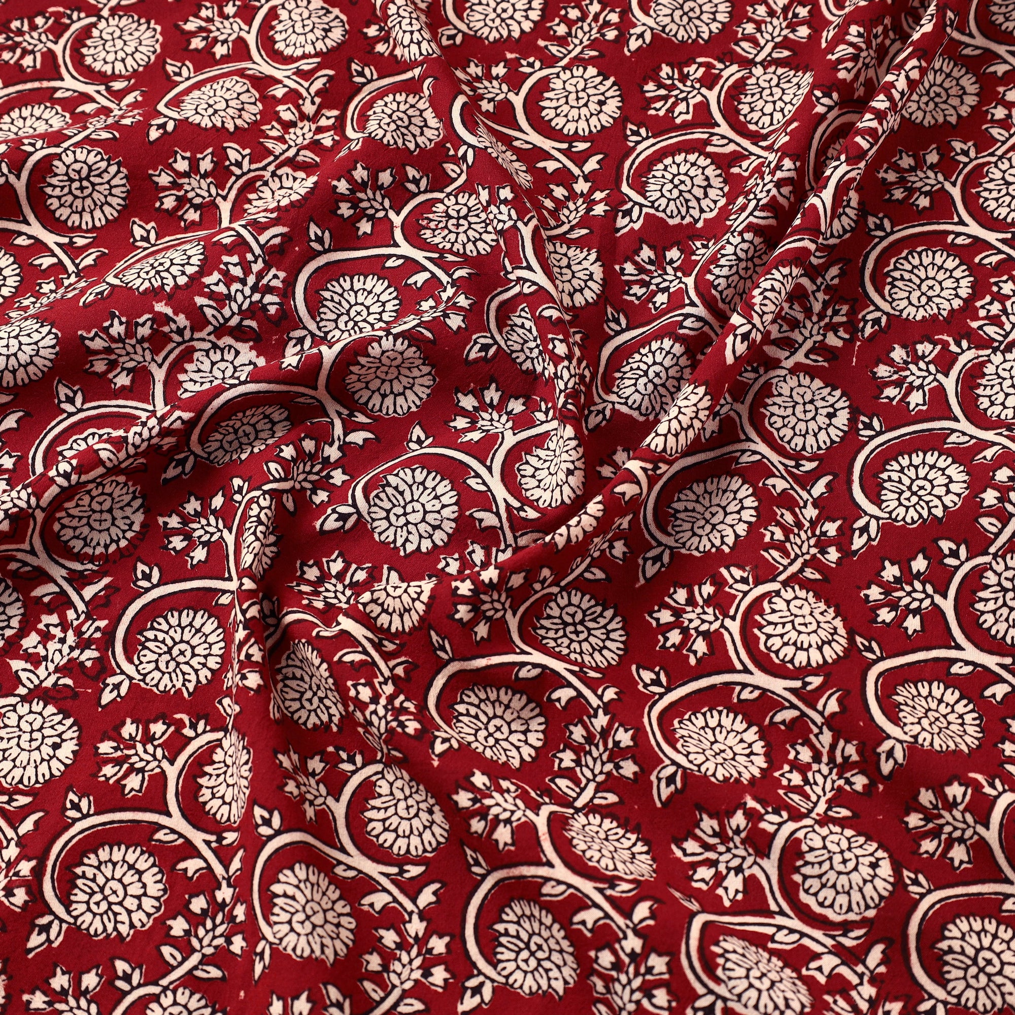 Fine quality red bagh hand block printed natural dyed cotton fabric. Meticulously crafted by the master artisan Mohammed Rafik Ji Khatri, who practices the age-old art of Bagh block printing in the Dhar district of Madhya Pradesh, this fabric is a testament to skilled artistry. Using natural dyes and following traditional processes, each motif and pattern on the fabric is carefully hand block printed, creating a unique and exquisite design.