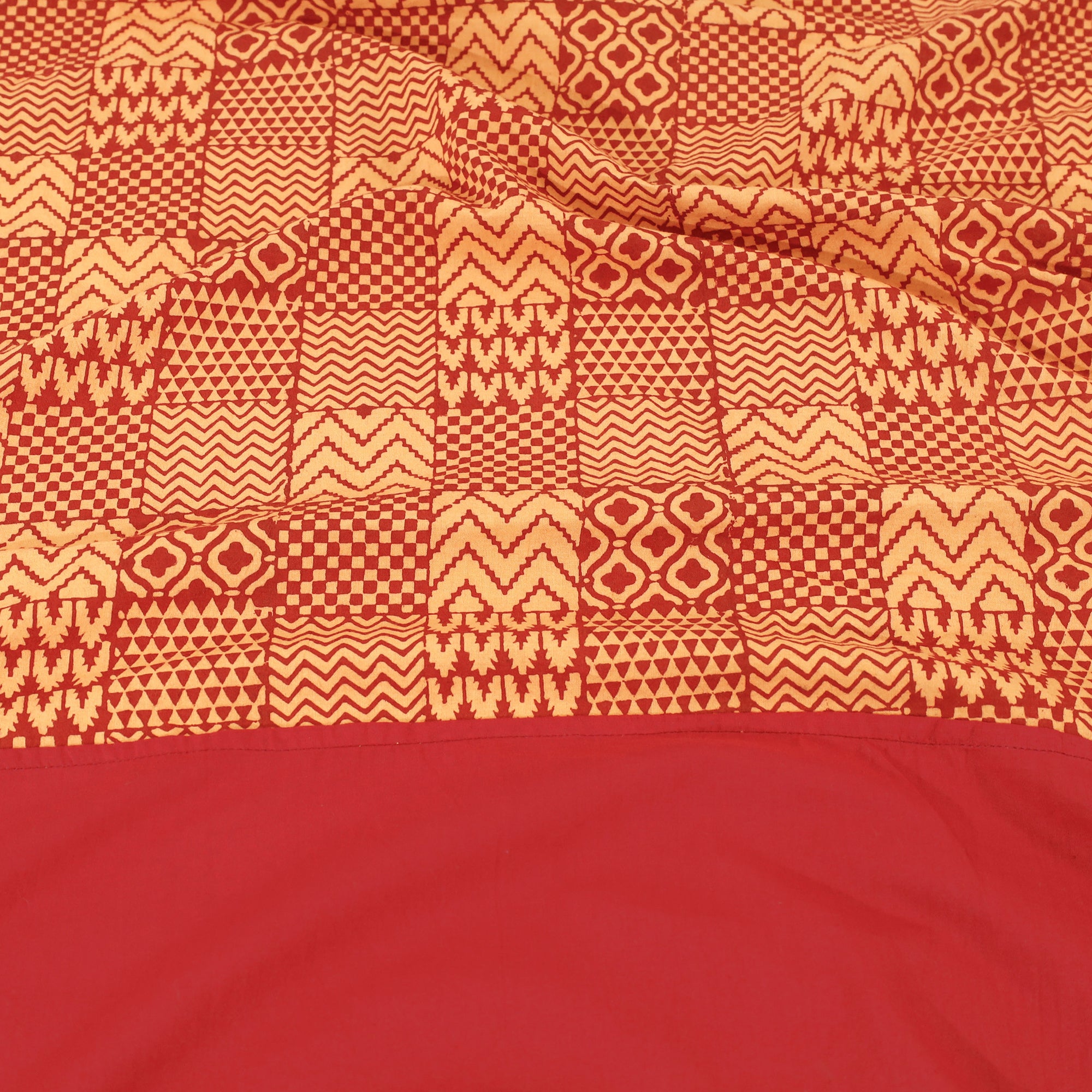 Red - Plain Cotton Double Bed Cover Set with Bagh Patchwork