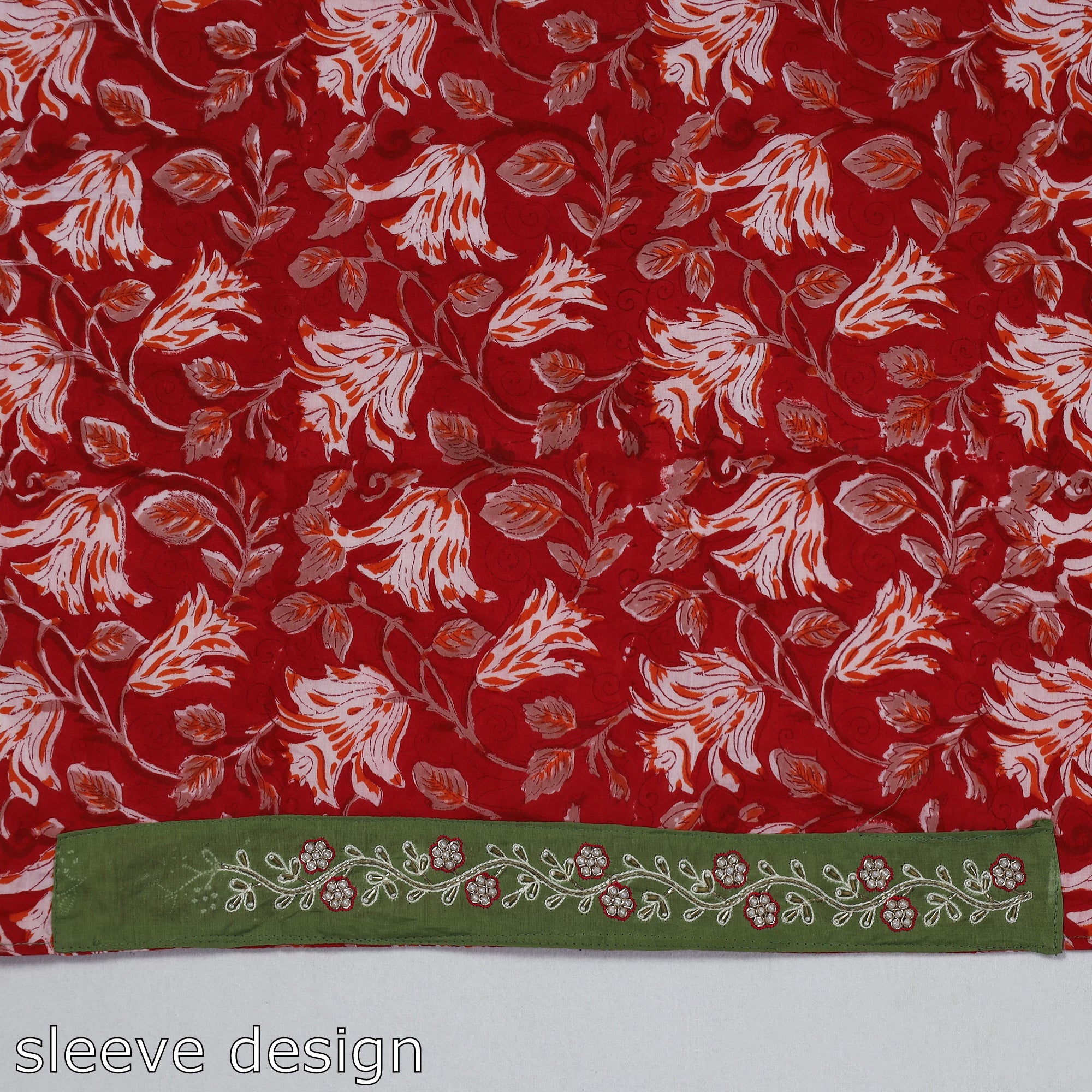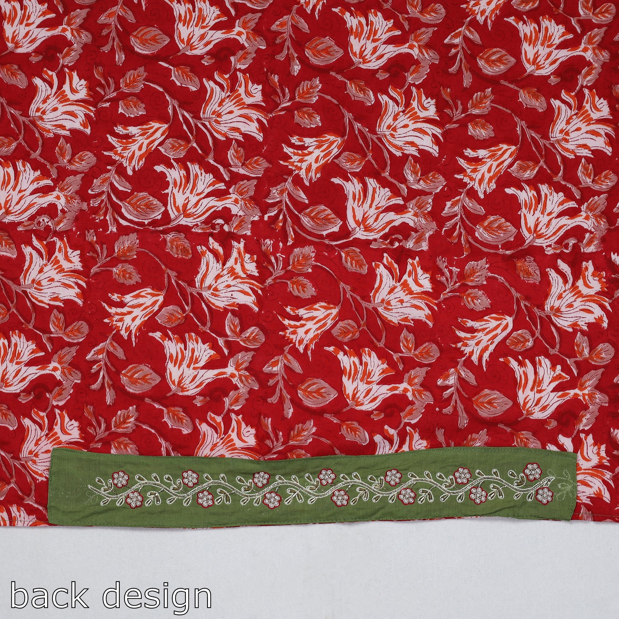 Fine-quality zardozi hand-embroidered sanganeri block printed cotton blouse material made from cotton fabrics & textured with handmade textiles of India. This embroidered blouse material will go with almost all of your sarees & enhance your look.