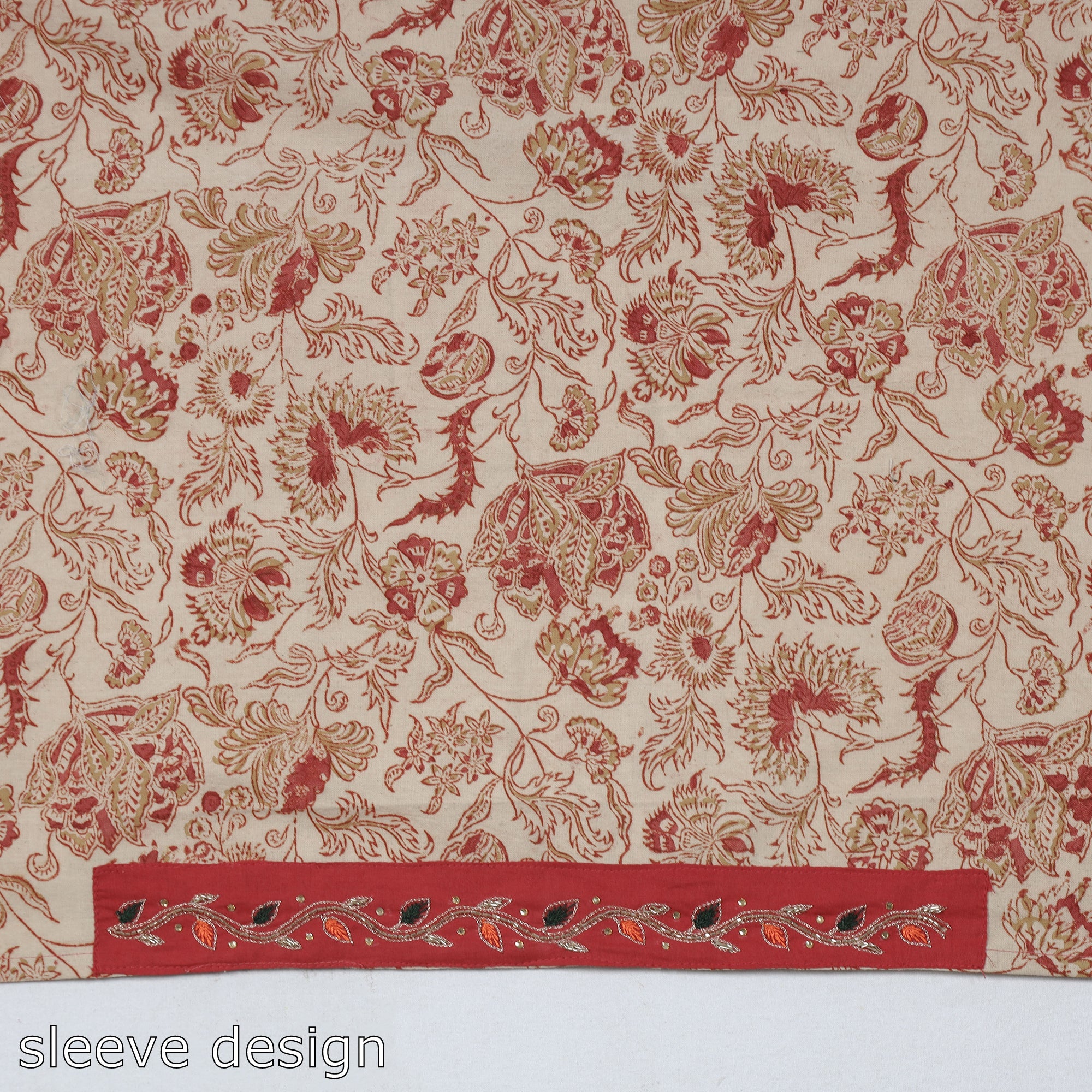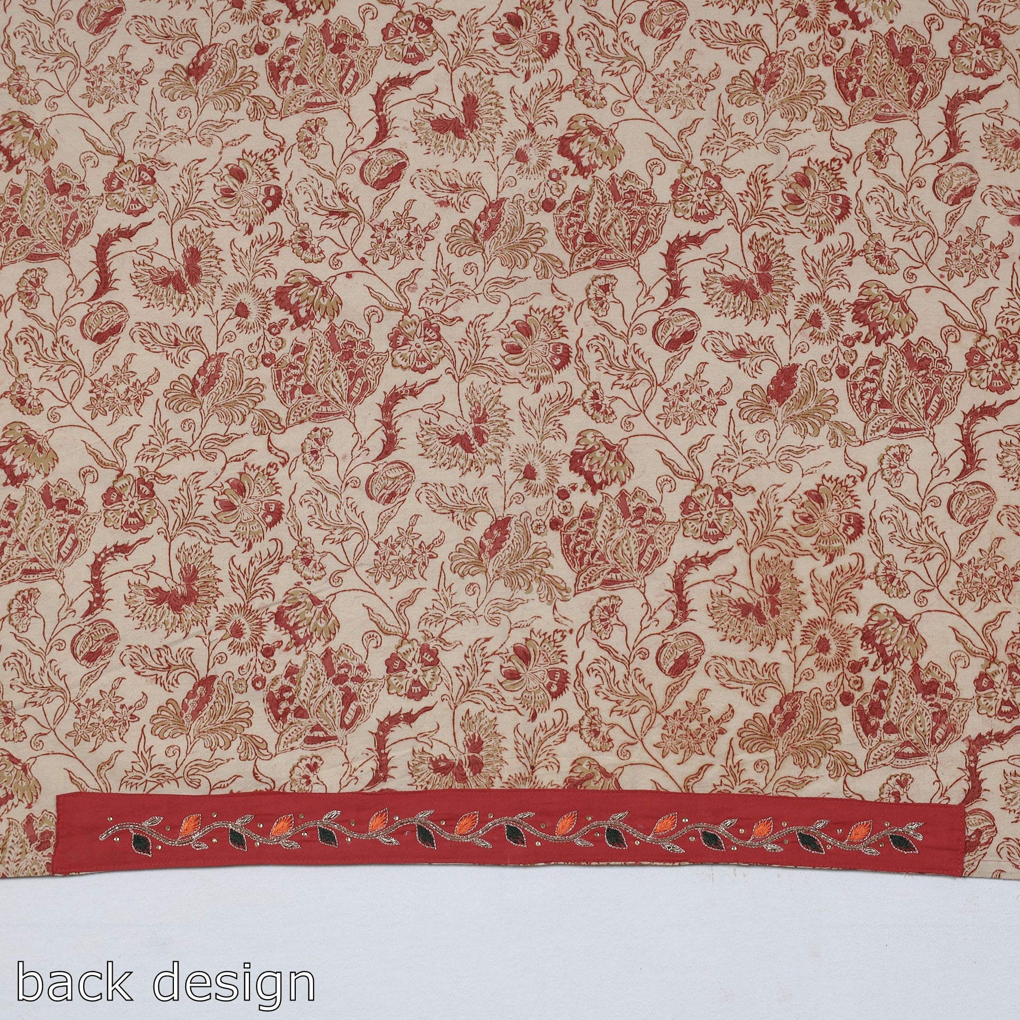 Fine-quality zardozi hand-embroidered kalamkari block-printed cotton blouse material made from cotton fabrics & textured with handmade textiles of India. This embroidered blouse material will go with almost all of your sarees & enhance your look.